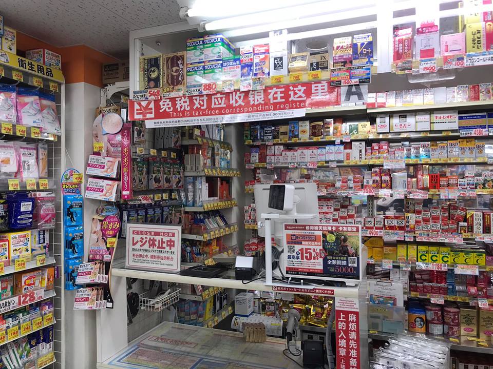 (駅を降りてすぐのダイコクドラックストア。中国語で溢れてます。)