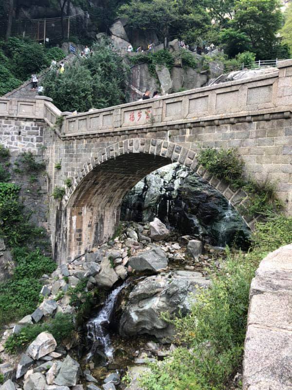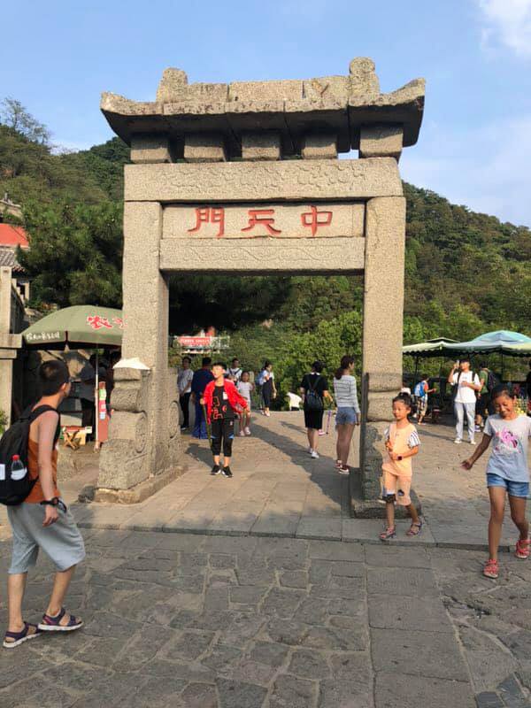 (神聖な門から入ります。由緒ある泰山登山。昔から皇帝を始め大勢の人々が登った歴史ある正面道を歩いて登ります。)