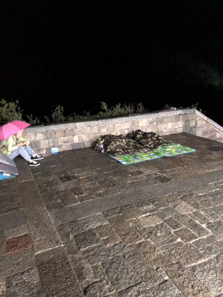 (山上でテントを張って野宿しましたが、あいにくの雨です。)