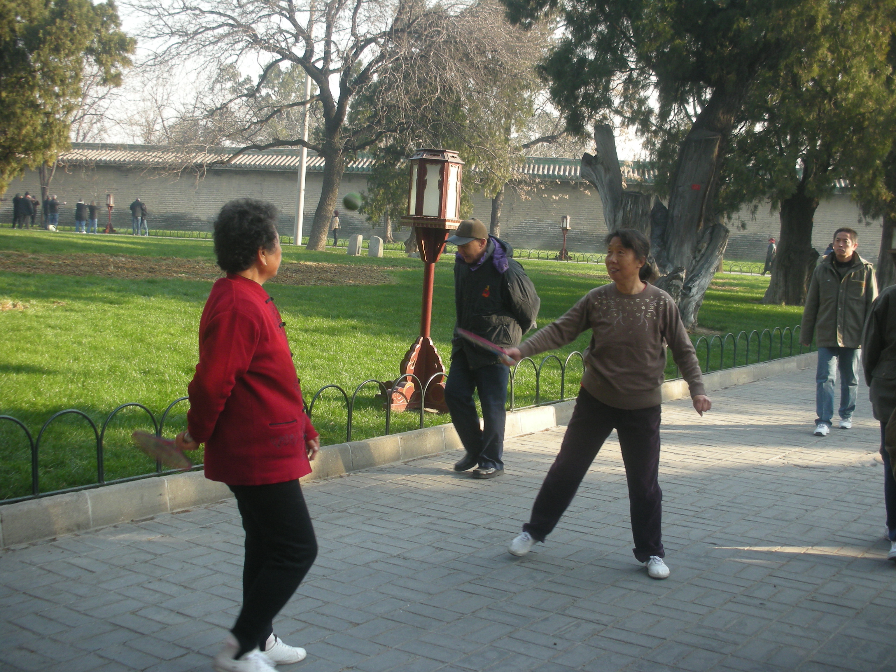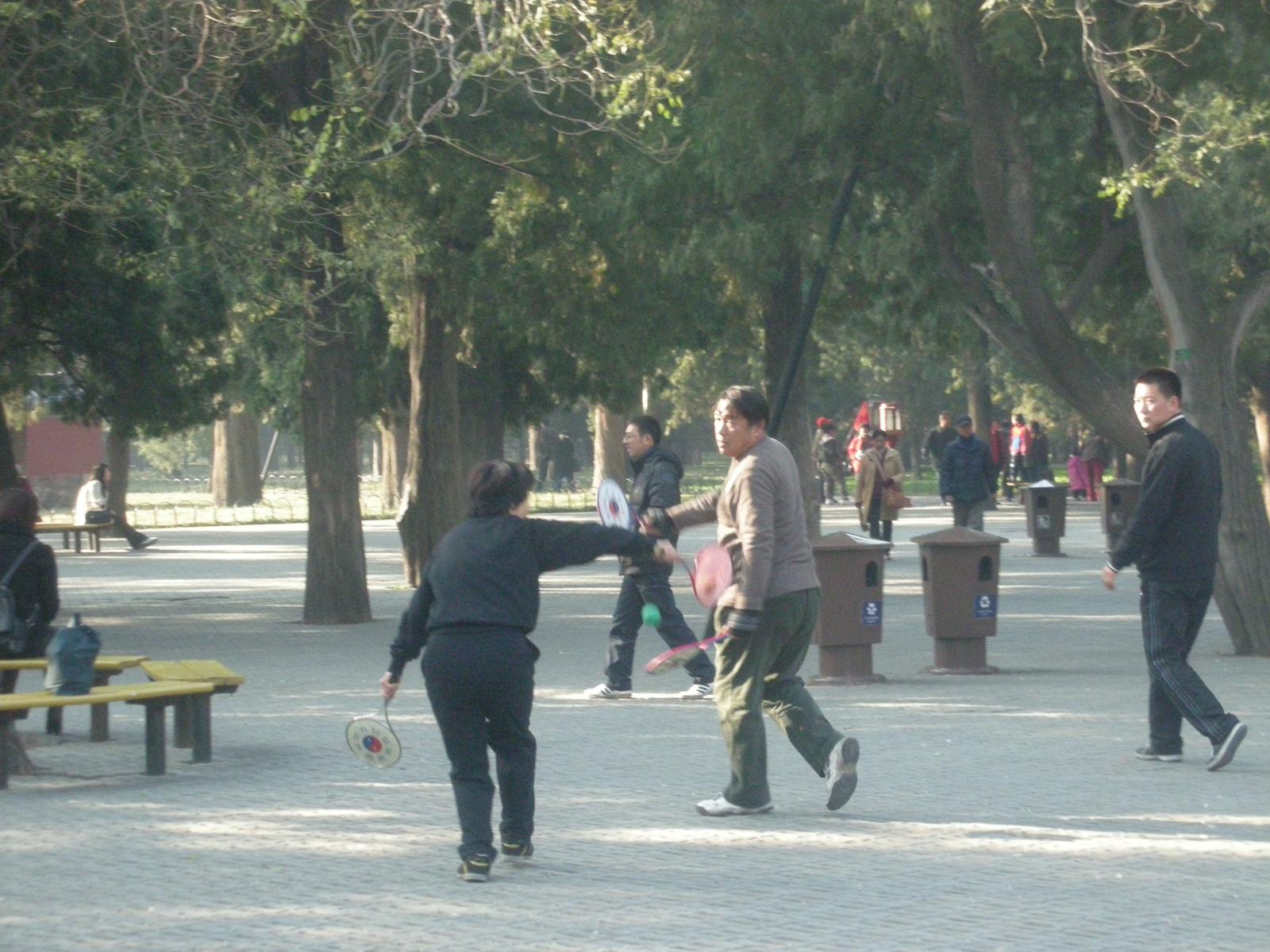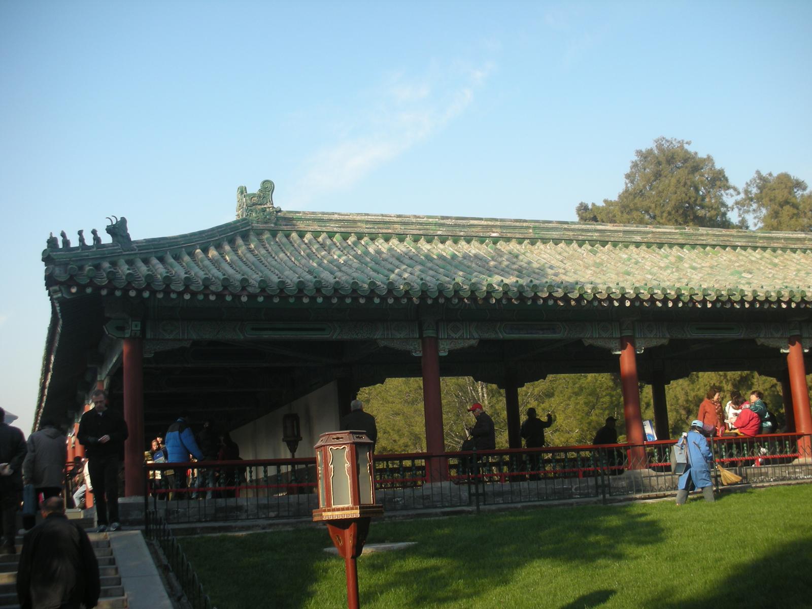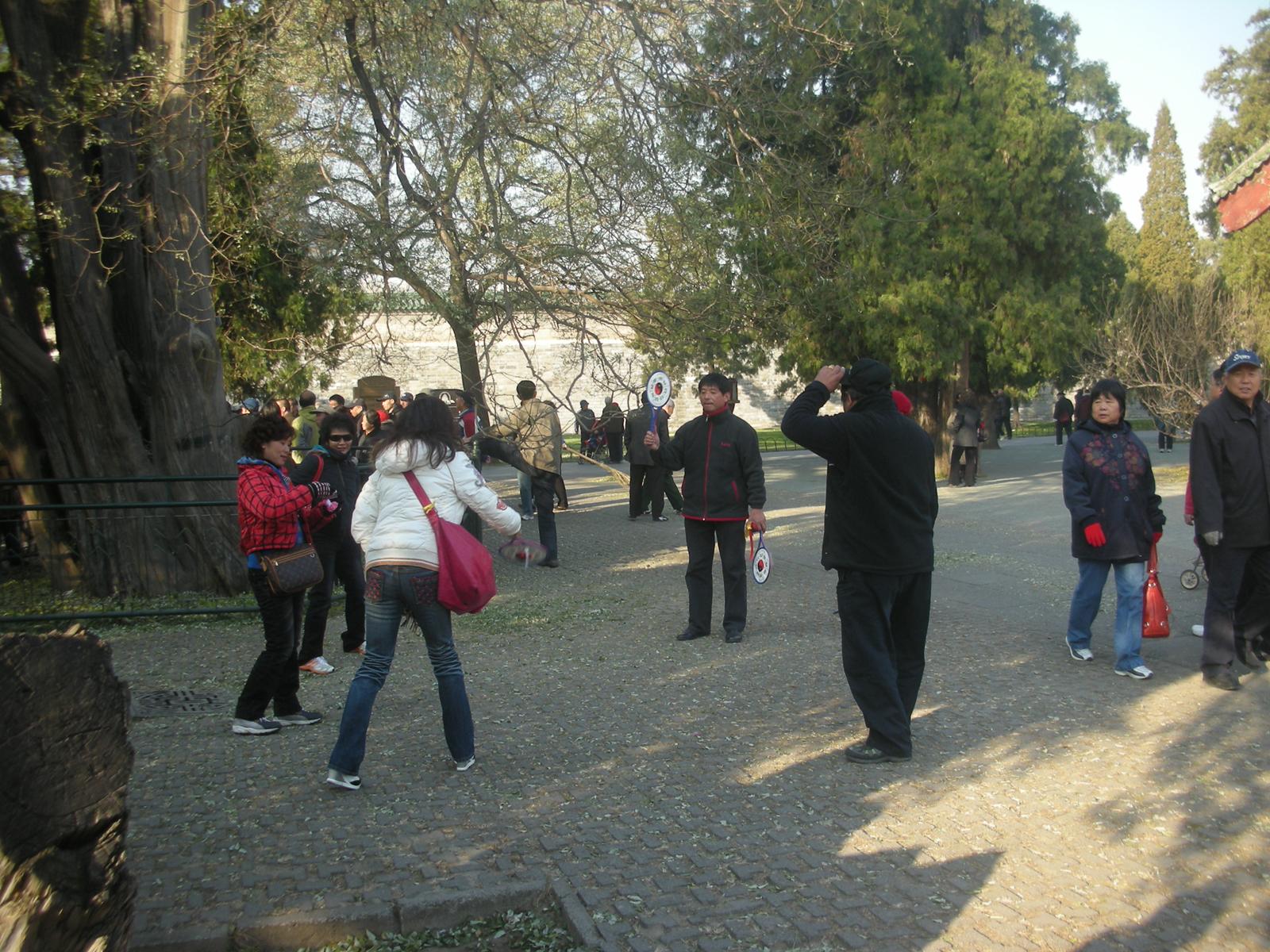 世界遺産に登録されている当公園ですが、地元の人々にとっては市民の憩いの場所となっています。東西配殿、七十二長廊などにはお年寄りが大勢集まり、太極拳したり、中国将棋したり、音楽を奏でたり、?子と呼ばれる昔ながらの蹴羽根を楽しむ人もいます。