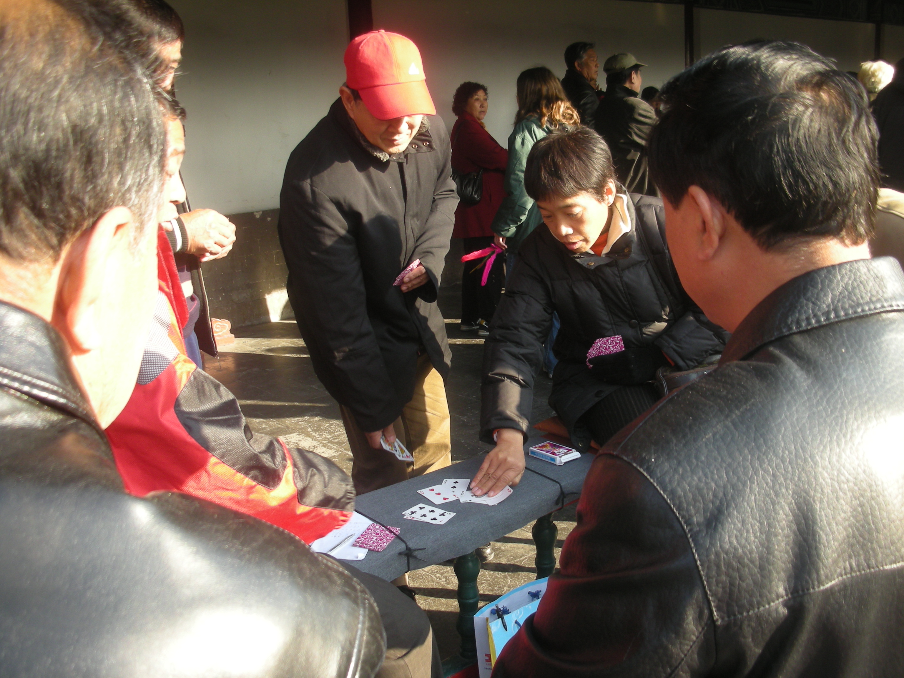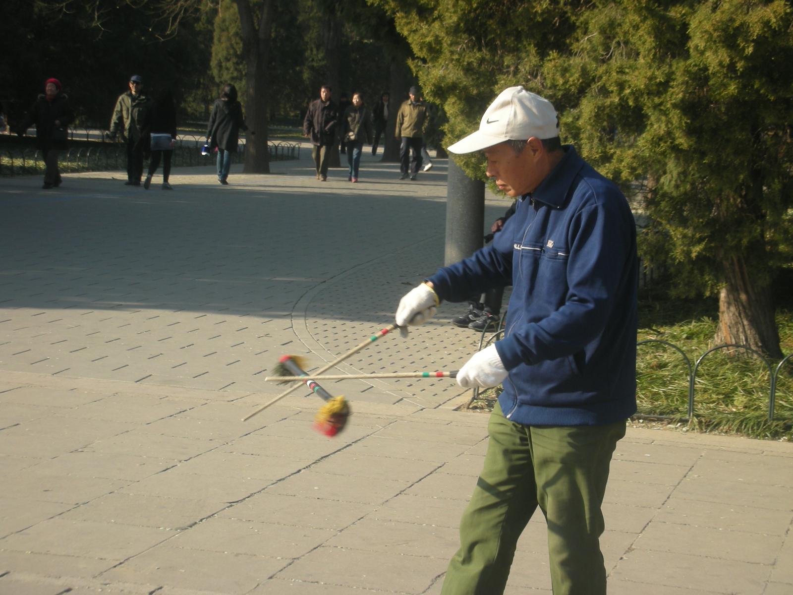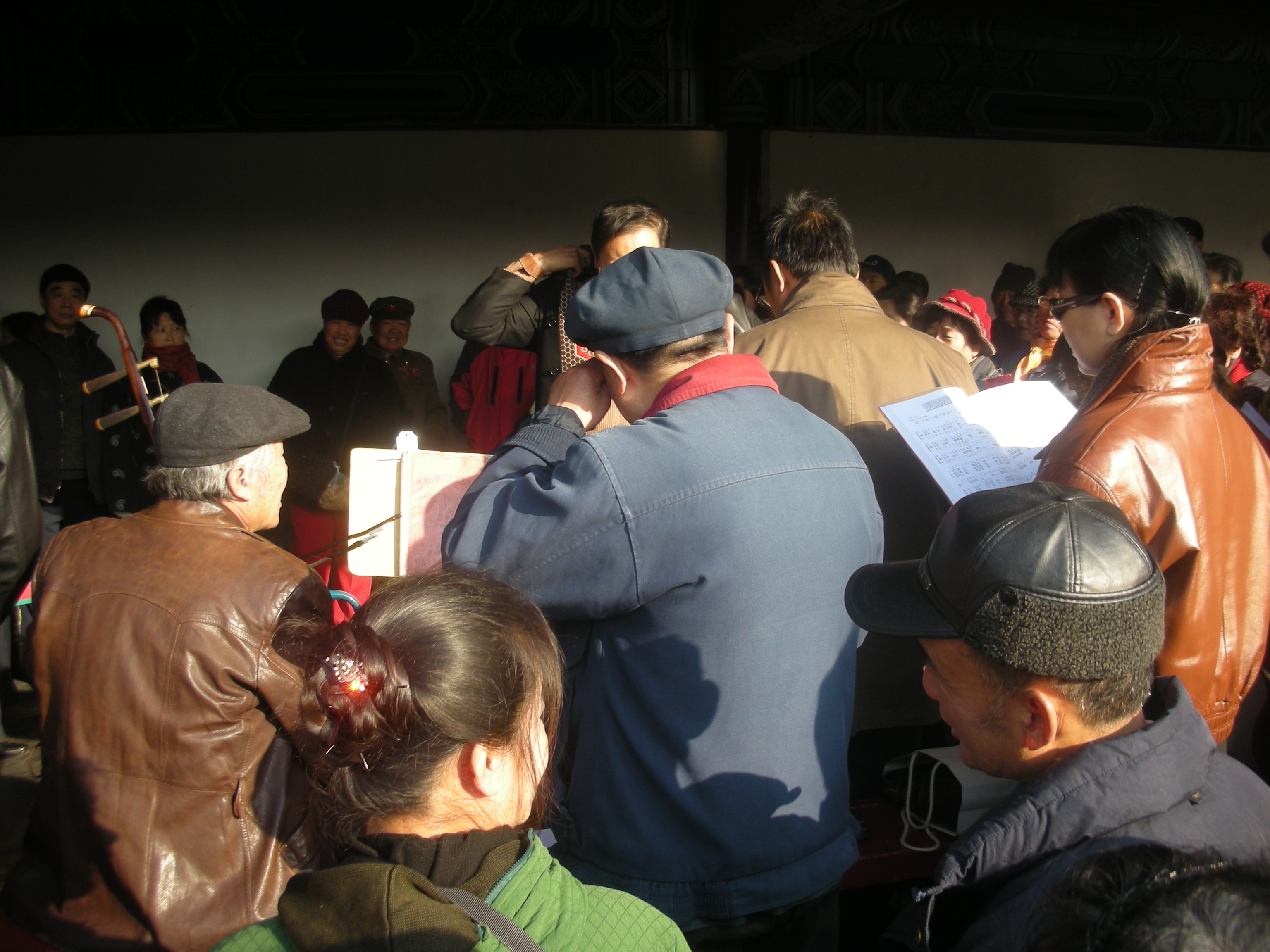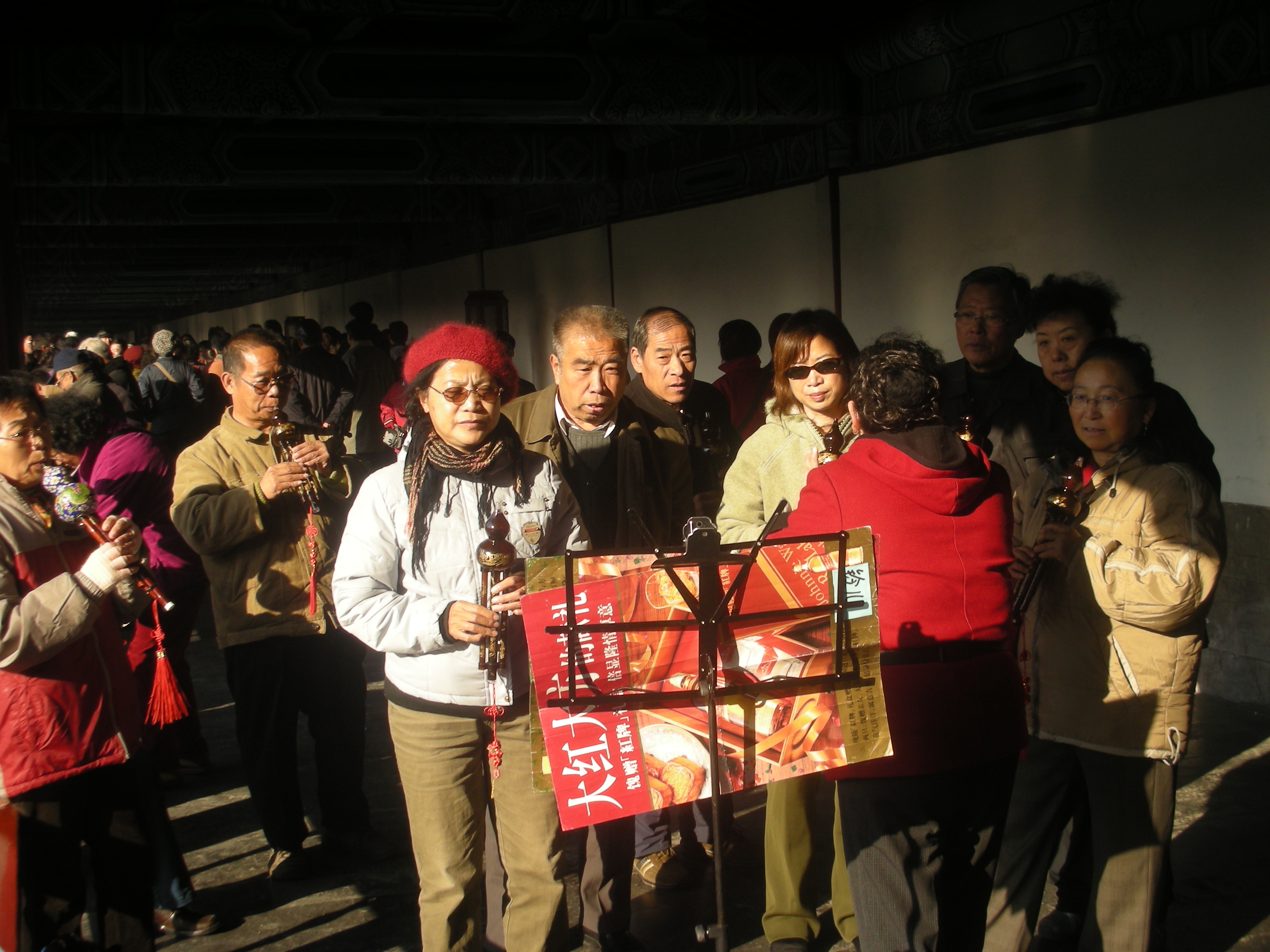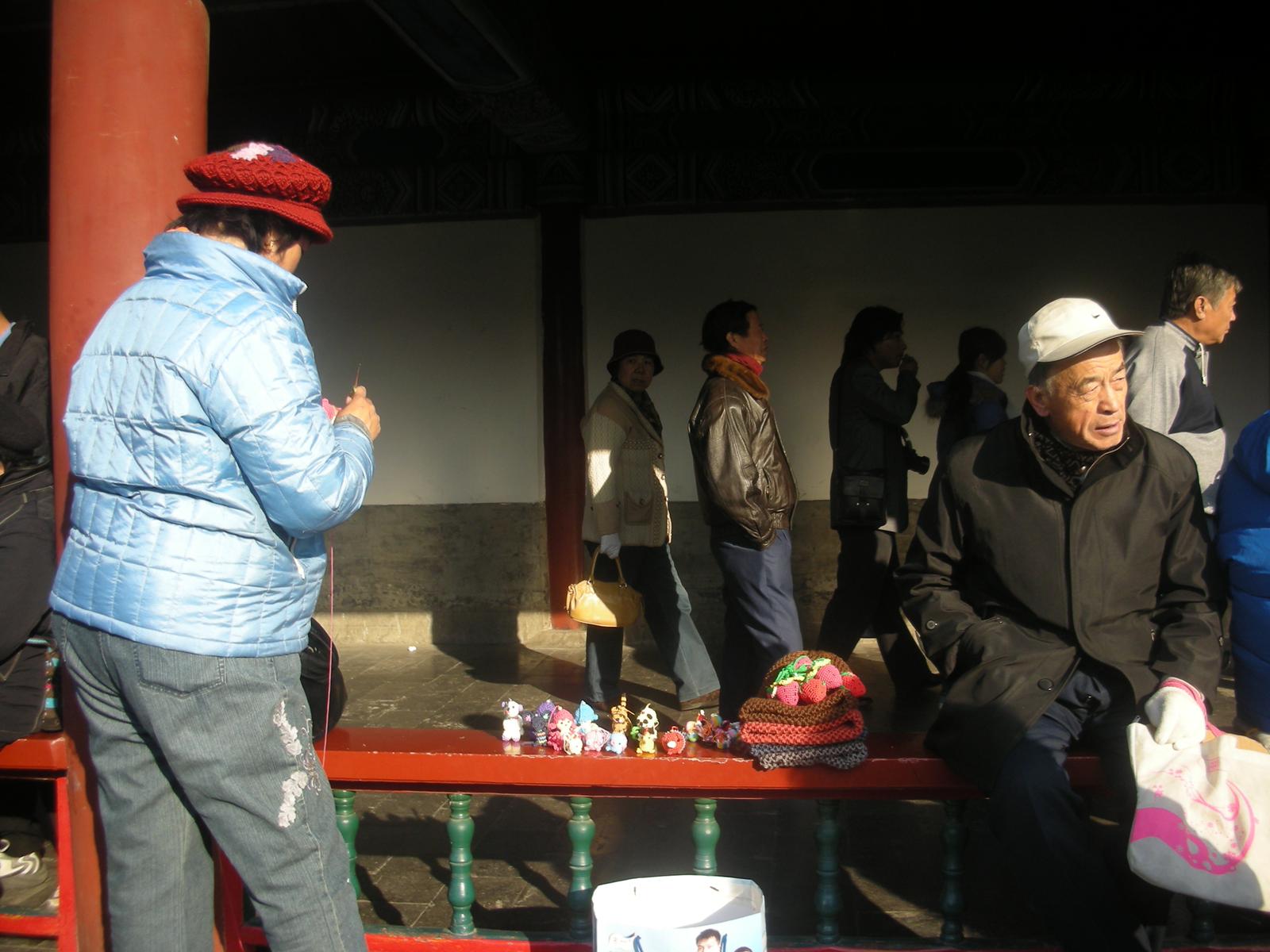 世界遺産に登録されている当公園ですが、地元の人々にとっては市民の憩いの場所となっています。東西配殿、七十二長廊などにはお年寄りが大勢集まり、太極拳したり、中国将棋したり、音楽を奏でたり、?子と呼ばれる昔ながらの蹴羽根を楽しむ人もいます。