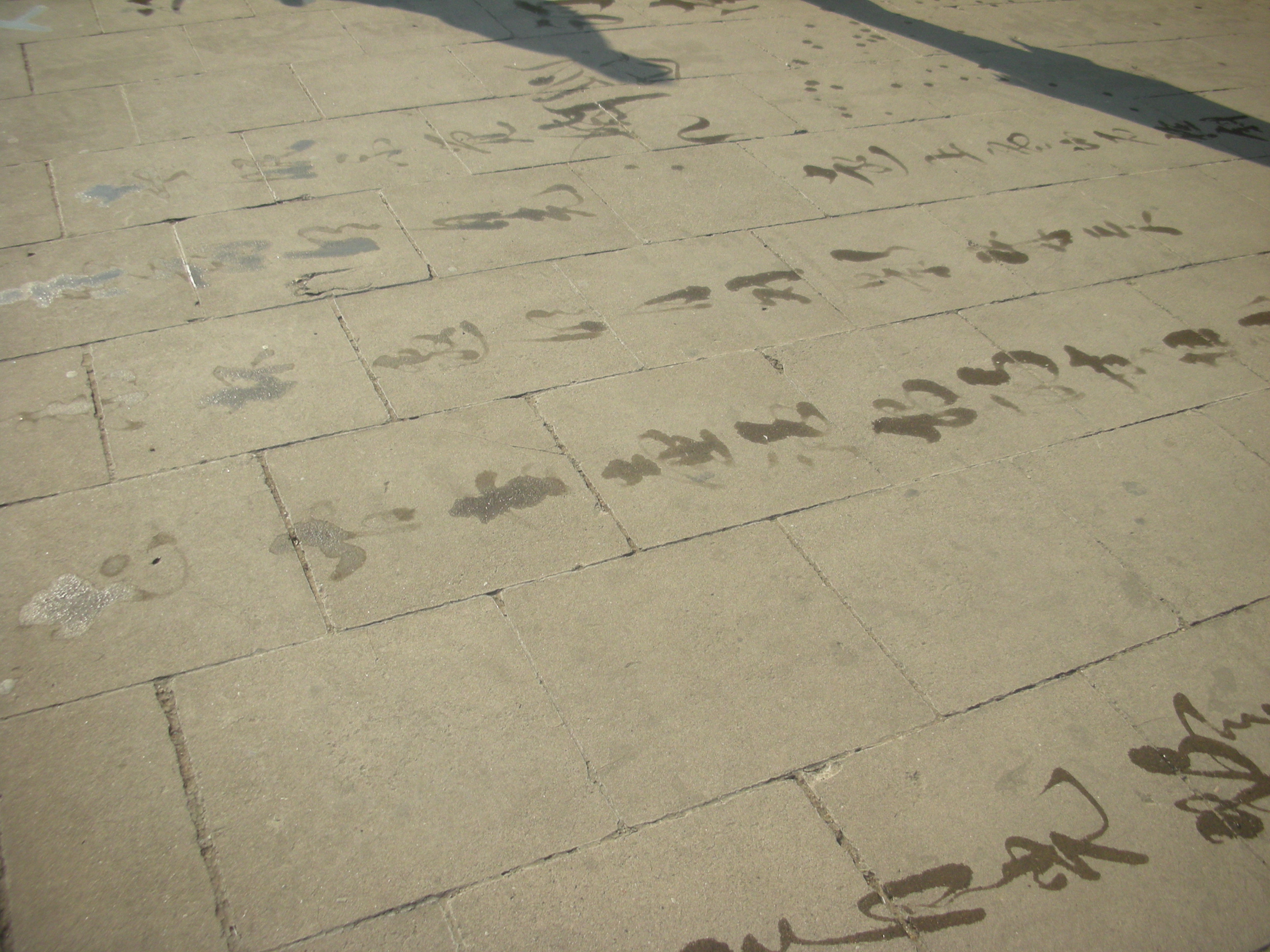 (円丘前広場の水習字。)