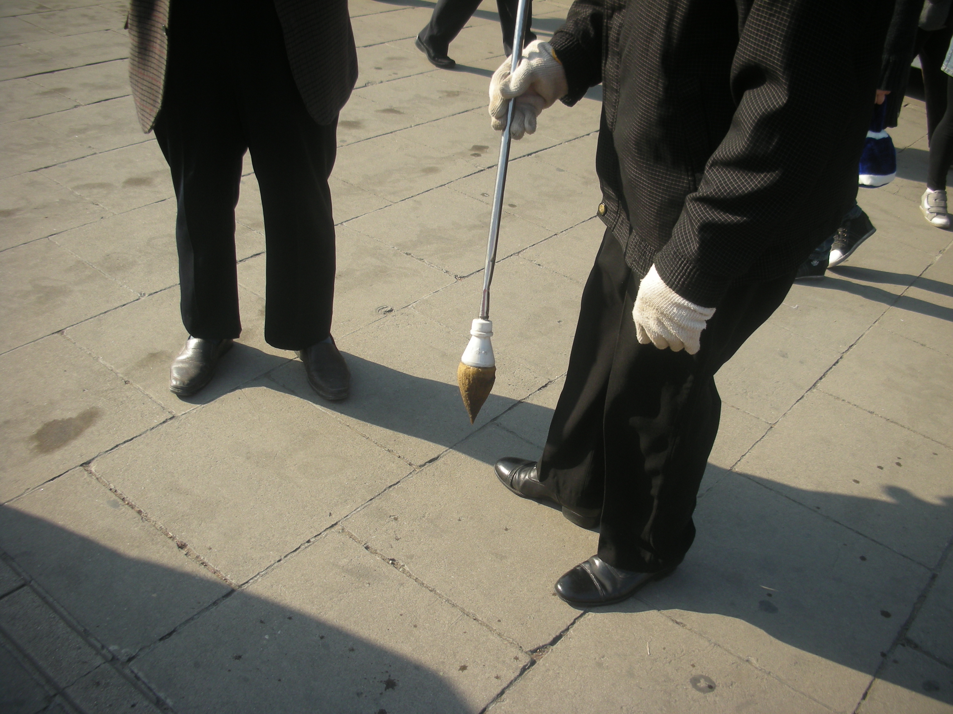 (円丘前広場で水習字するおじさん)