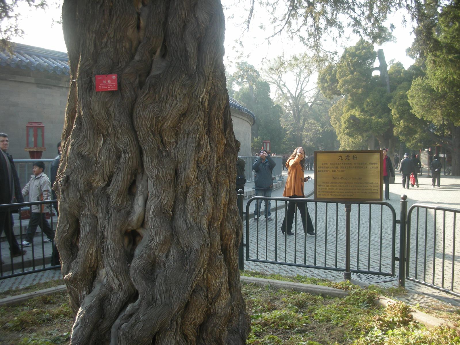 (皇穹宇の後ろの九龍柏。九龍に似ているのであがめられている。)