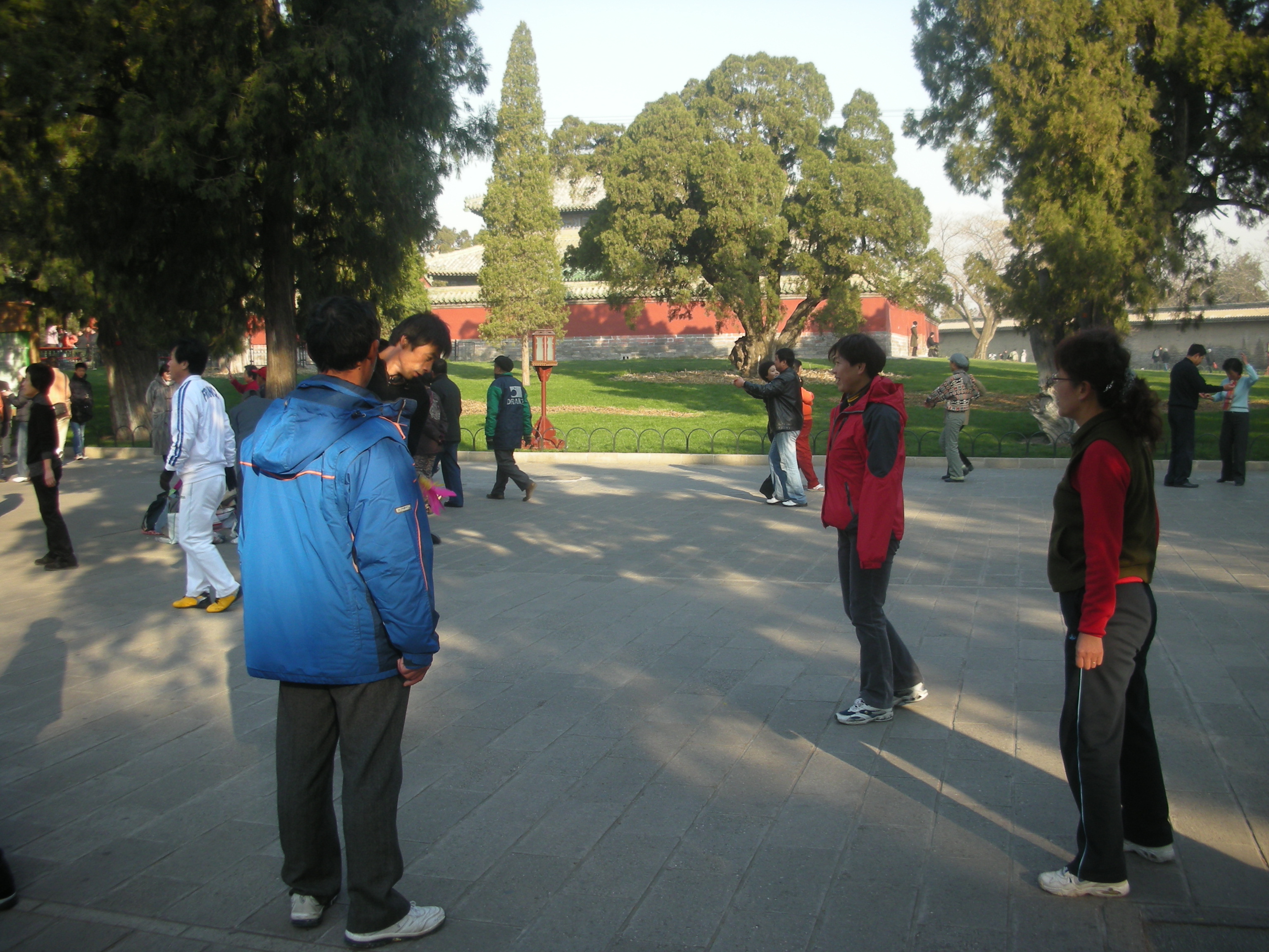 (皇穹宇の後ろで運動する人々。)