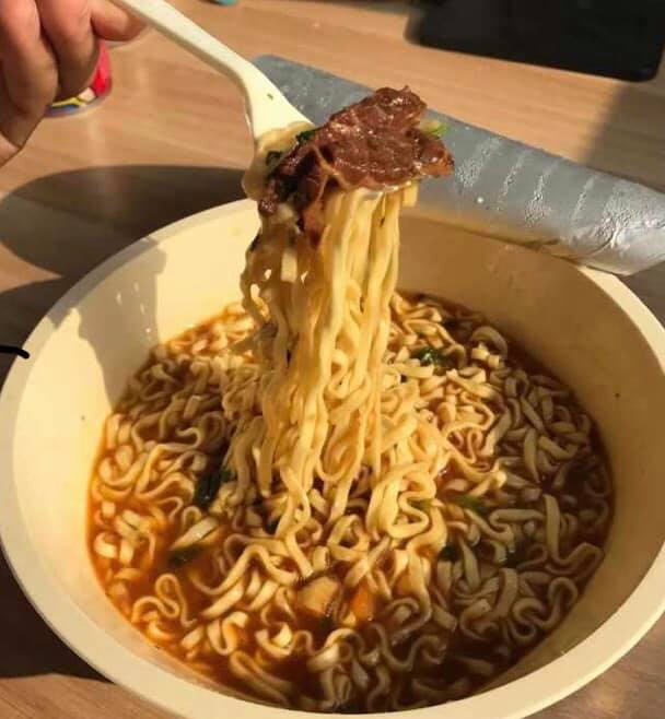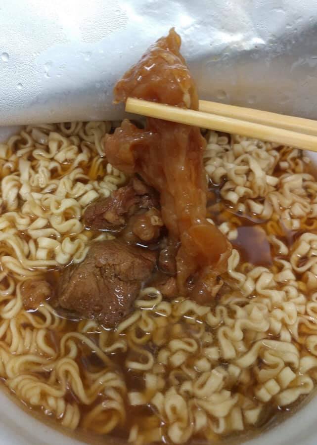 早速お湯をかけて作ってみます!肉の塊がごろごろしていて、麺も結構しっかりとしており、パッケージ写真の期待感を裏切らない仕様となっています。スープは牛肉麺のコクと辛さが絶妙にマッチしたバランスが最高です!