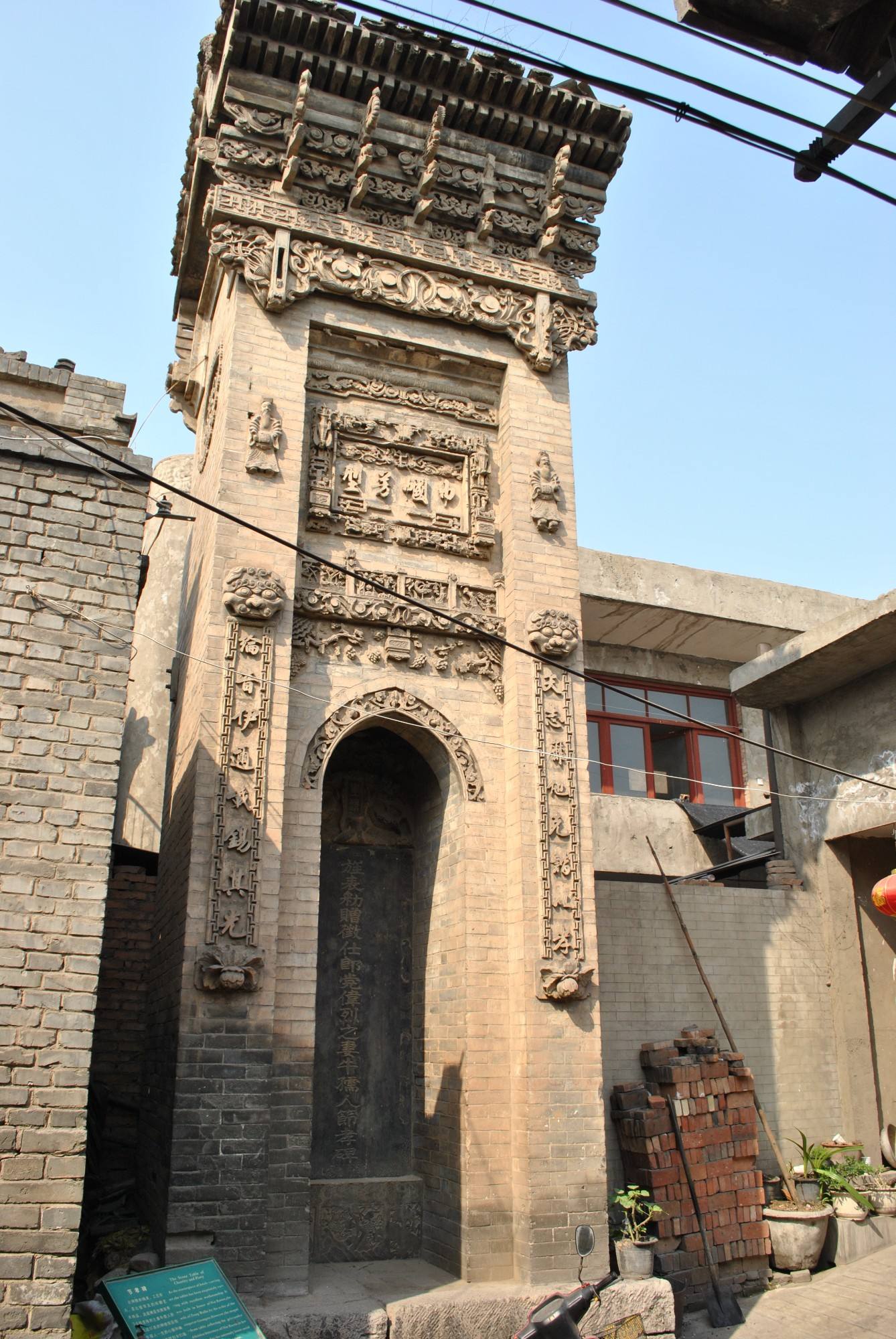 党家村には明清時代の四合院の形式の家が、昔のままの姿で残っています。この村はかつて商業で栄えた場所で裕福な人が多かったことから、北京の四合院などより作りが豪華であり、石や木や煉瓦にさまざまな彫り物が施されています。正面の奥の部屋が先祖を祭るところで、二階があったりします。