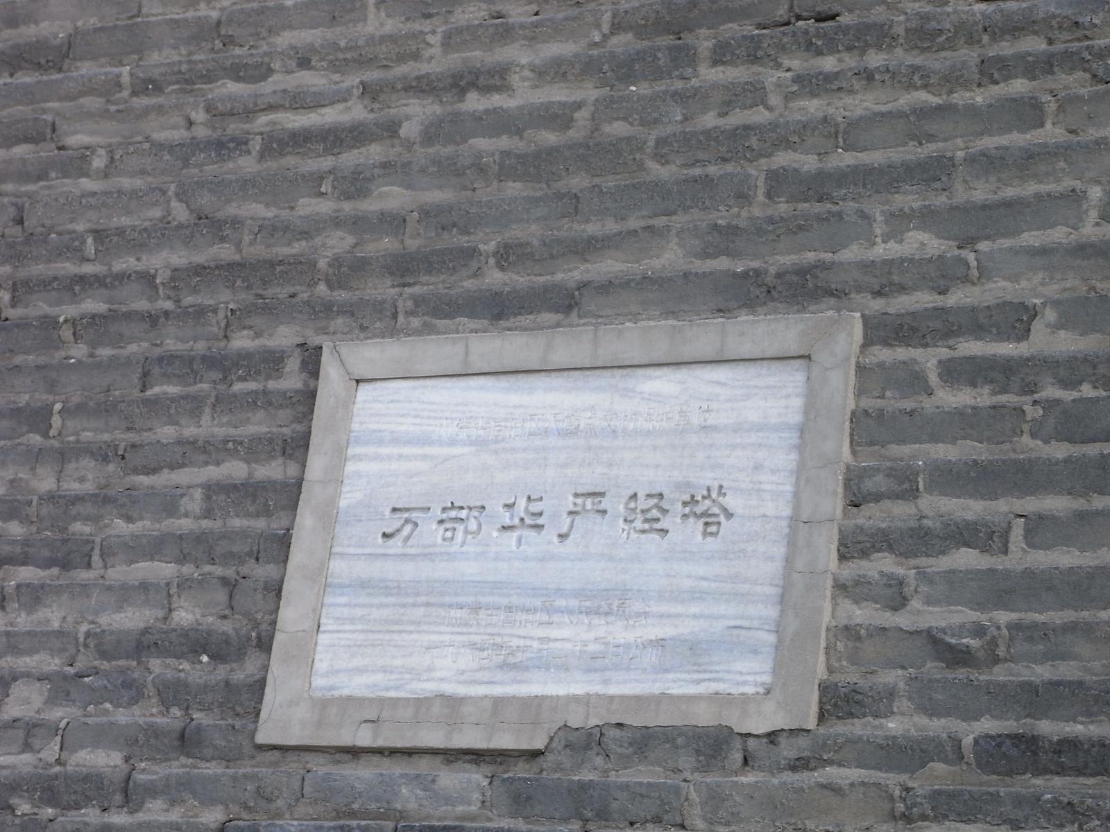 (万部華厳経塔の中を行きます。第一層の内壁には金代の石碑を6枚はめこみ、各層に代々訪れた人々の題記を漢語を中心に契丹小字、女真字、ウイグル体モンゴル字、パスパ文字、古シリア字、古ペルシア字などで記されています。そのうち、1162年の漢語の題記がもっとも古いです。)