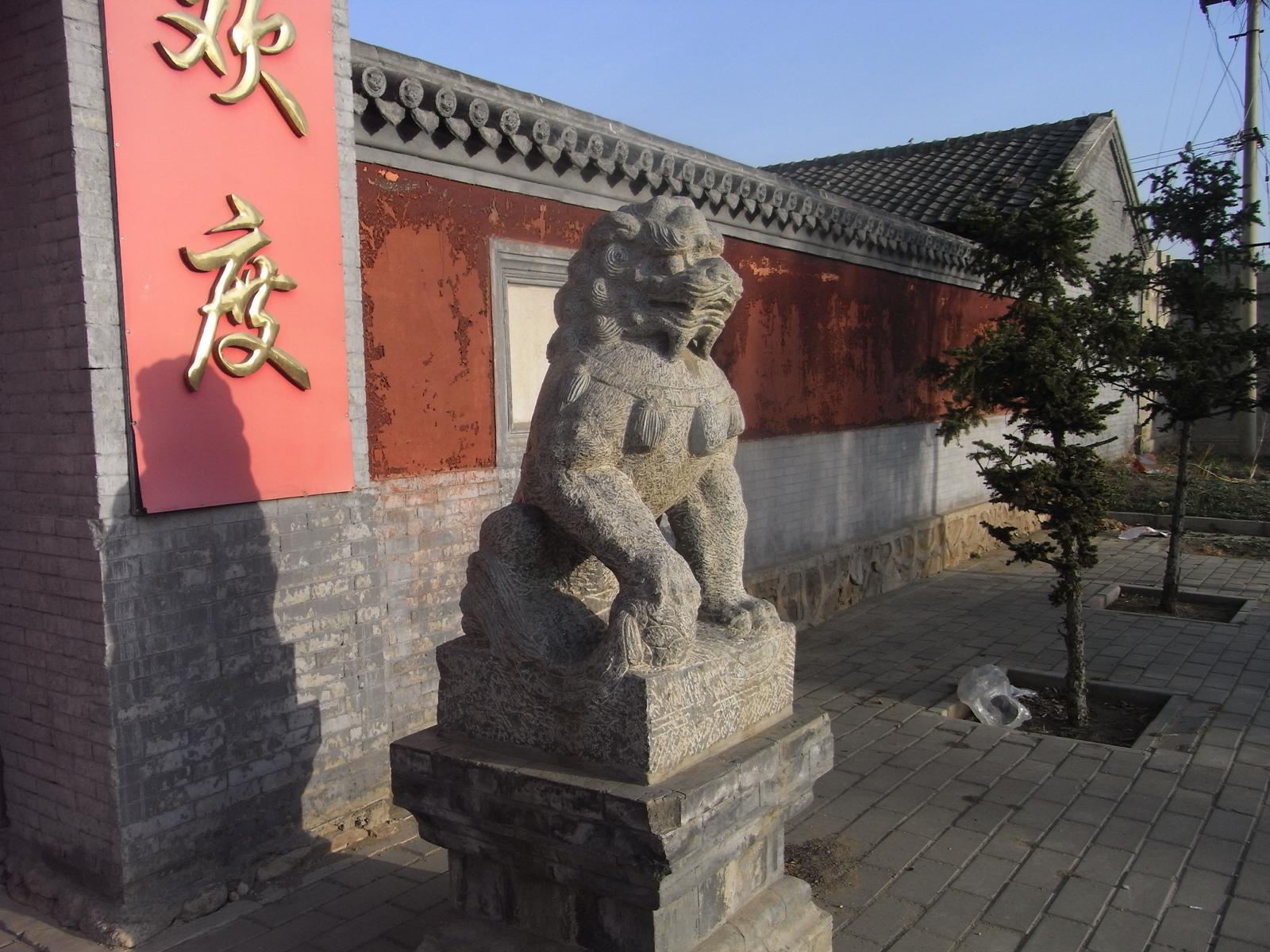 (万部華厳経塔の正門前の獅子。球を持っているのでオスです。メスは子を足の下に踏んでます。)