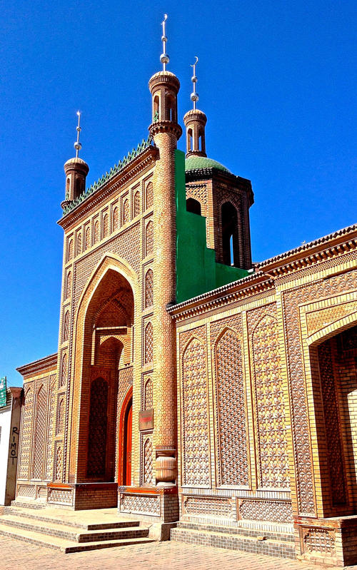 大半がイスラム教徒で、街を歩くとモスクが並び、イスラム帽を被った人々が1日5回のコーランをしています。また食べ物の首足としては中央アジアでよく食べられているナンが食べられています。タクラマカン砂漠周辺のオアシスでブドウなどの果実や穀類を栽培して生活を立てているウイグル族の人々もいます。