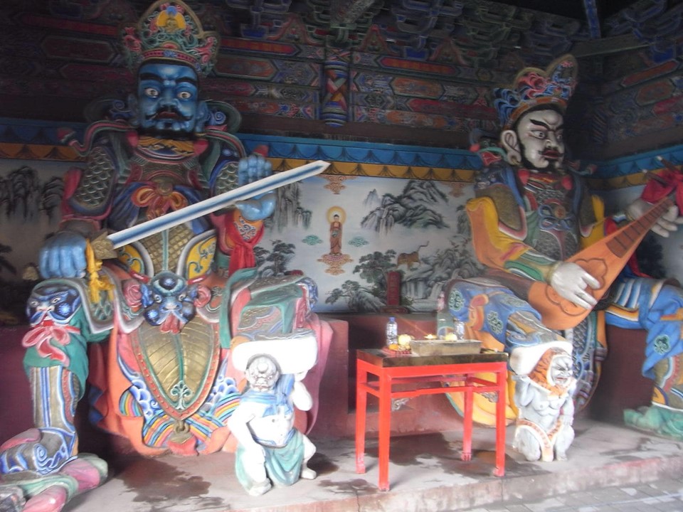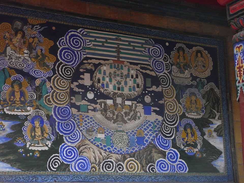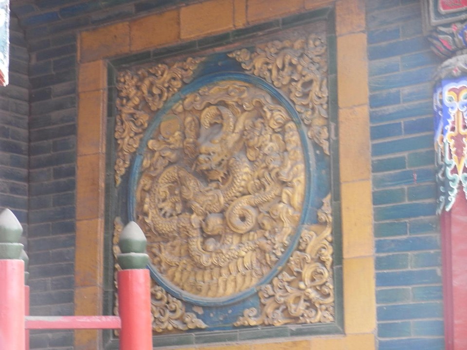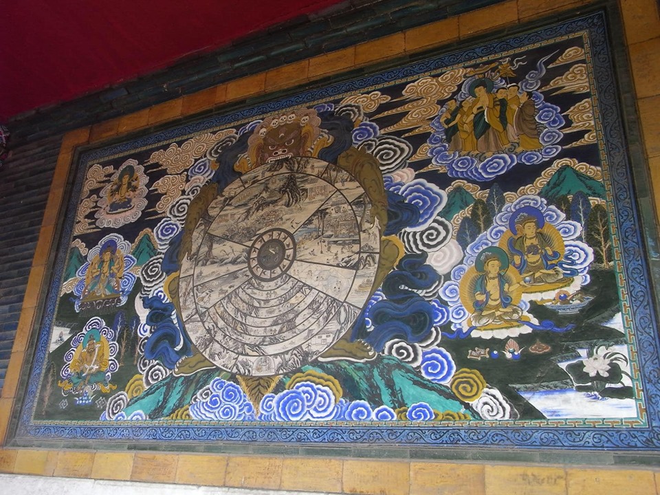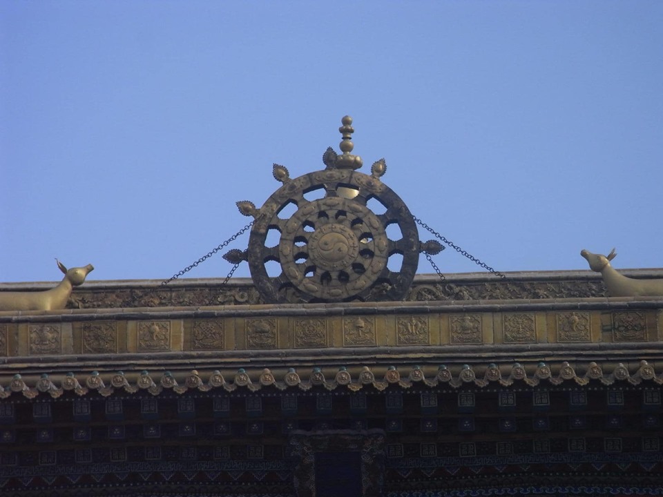 (寺院全体が中華とチベット文化を融合させた寺院で普通の中国寺院とは違い、大変興味深い。)