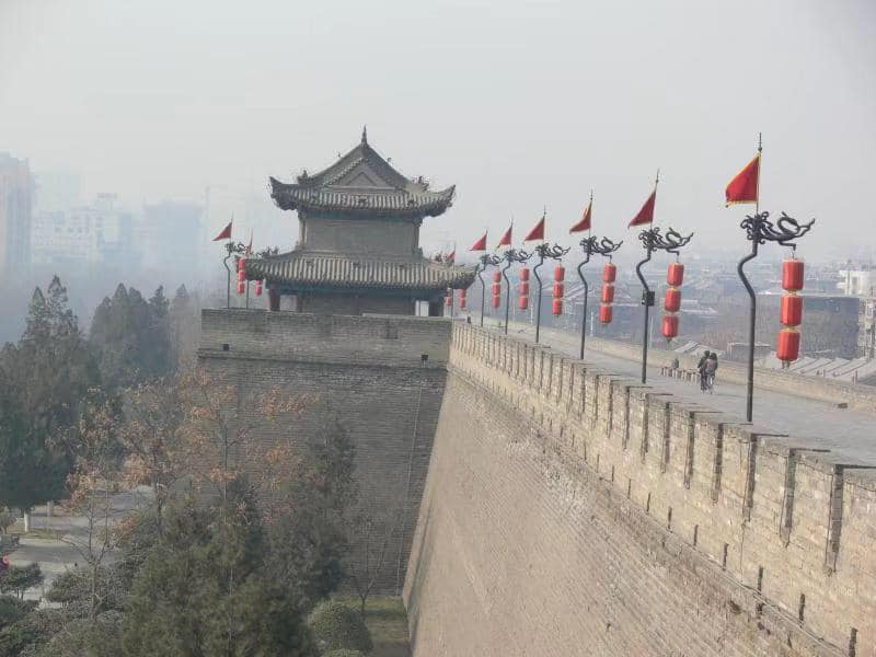 今日は西安の城壁について紹介いたします。西安の城壁は明の時代に作られ、中国に現存する最大規模のものです。古代の城壁が完全な状態で残されており、中国の第一批全国重点保護文物となっております。城壁は高さ12m、上幅12?14m、下幅15?18mもあり、街全体を長方形で囲い、全周13.74kmもあります。