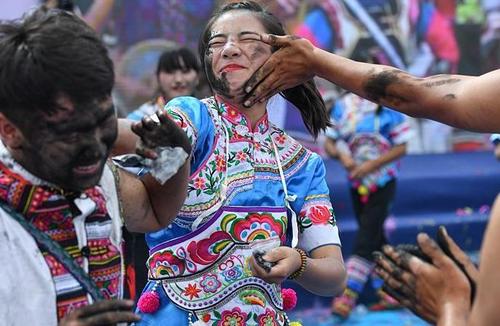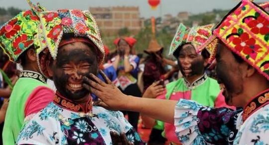 シボ族の代表的な祭りとして、すす塗り祭りがあります。祭りの前日に布にすすを作り、翌朝早くから自分の顔にすすを塗って、街に出て笑いながら、街の人たちとすすを塗りあいます。注意しないといけないのは、目上の人に塗る時は、まず挨拶をし、すすを塗る許可をもらってから、塗るようにしなければいけません。すすを塗ることにより、穀物の神様に豊作と穀物に黒い穂ができないようになると伝えられているのです。
