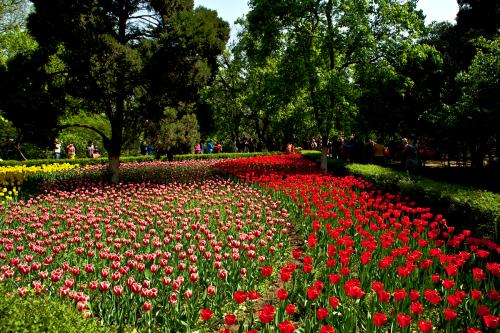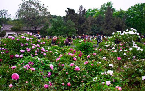 史書によると興慶宮にある沈香亭は楊貴妃が牡丹を観賞するために建てられたもので毎年春になると綺麗な牡丹が鮮やかに咲いていたそうです。牡丹の花は百種類以上あって一日に何回も色が変わったといいます。玄宗皇帝と楊貴妃は沈香亭で酒を飲み、歌を歌い、花盛りの牡丹を観賞しました。輿に乗って、李白を呼び、詩を作らせたこともありました。