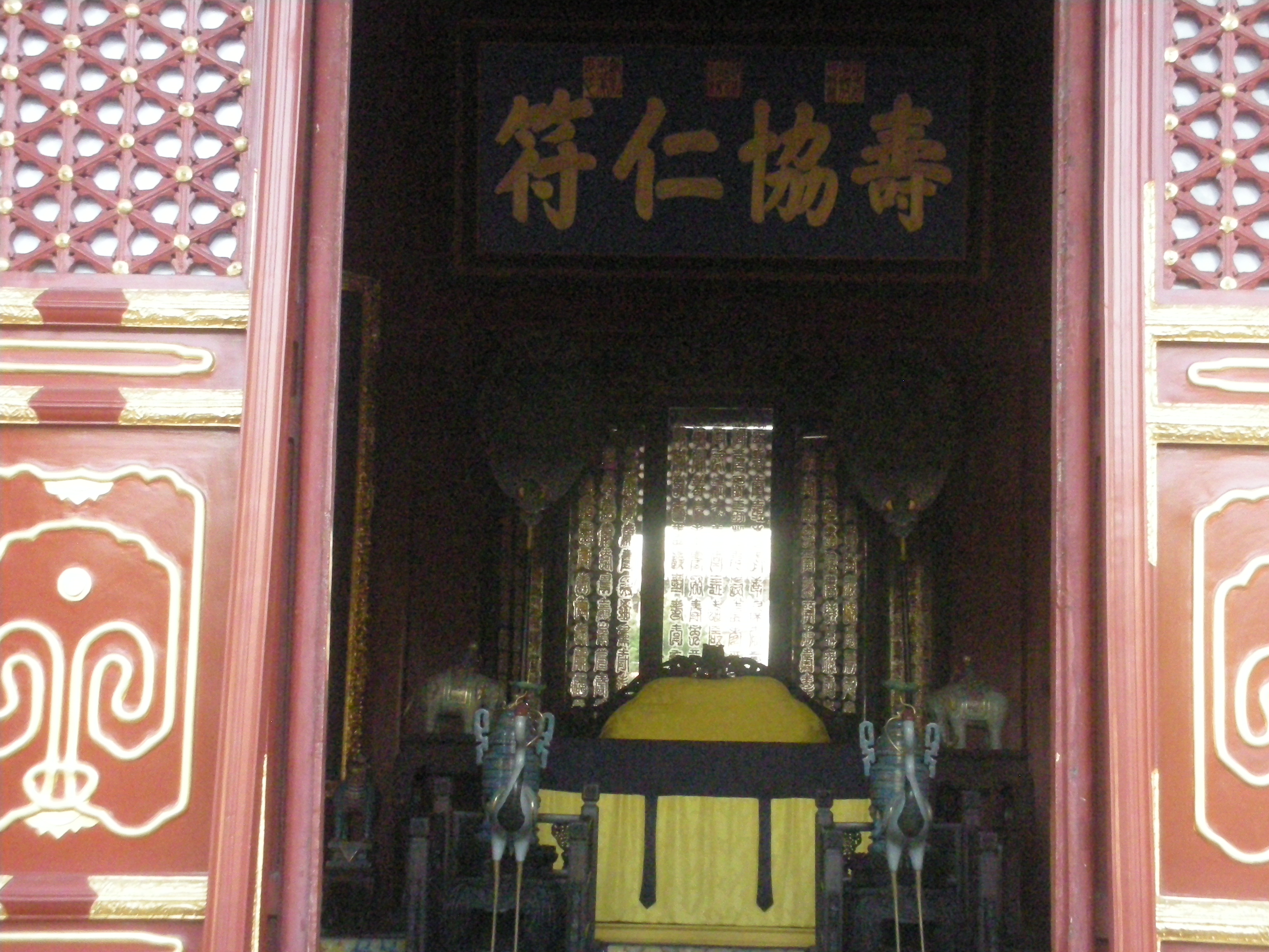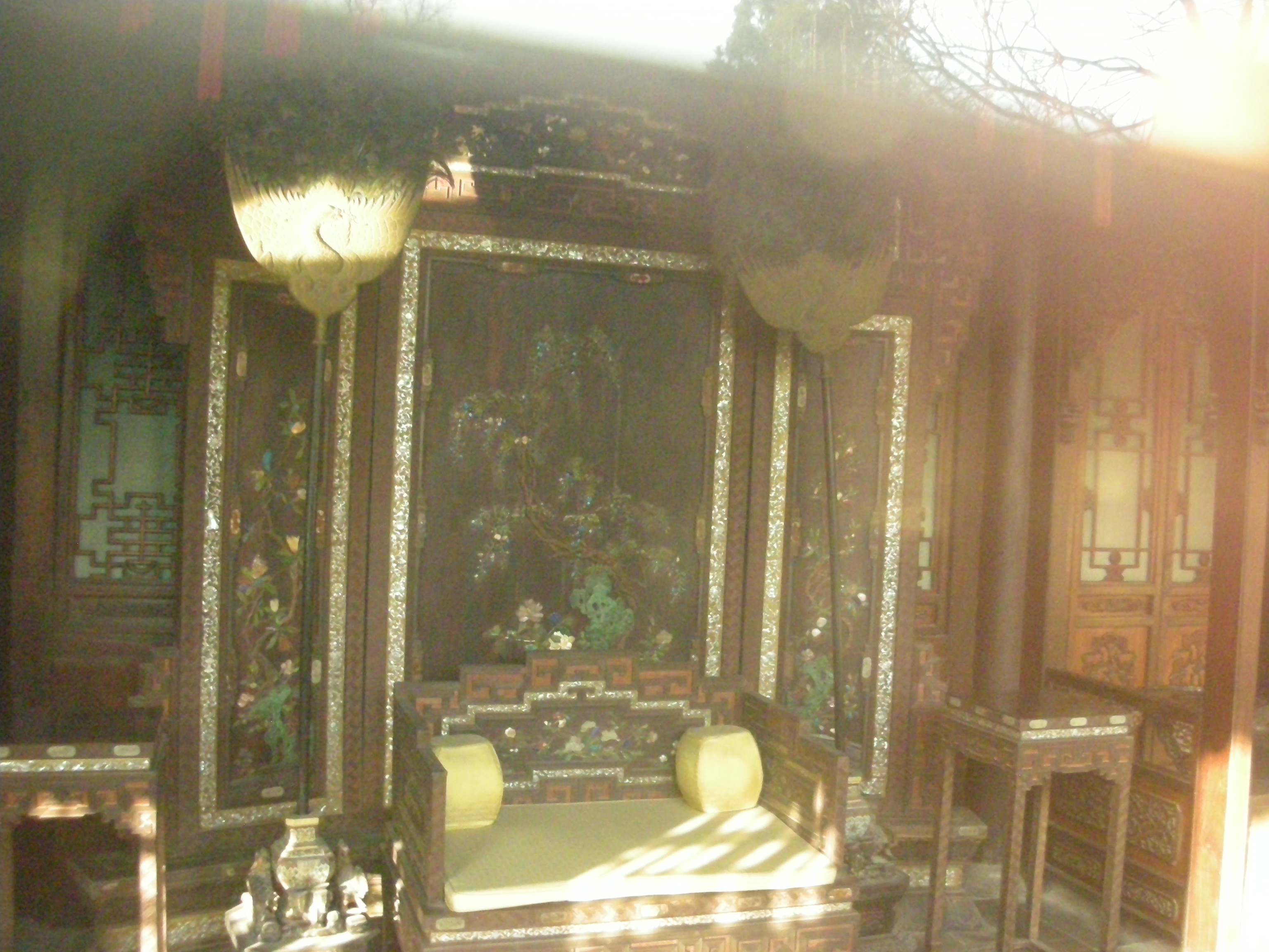 (西太后が光緒帝を軟禁していた場所と言われている「玉瀾堂」の玉座。)