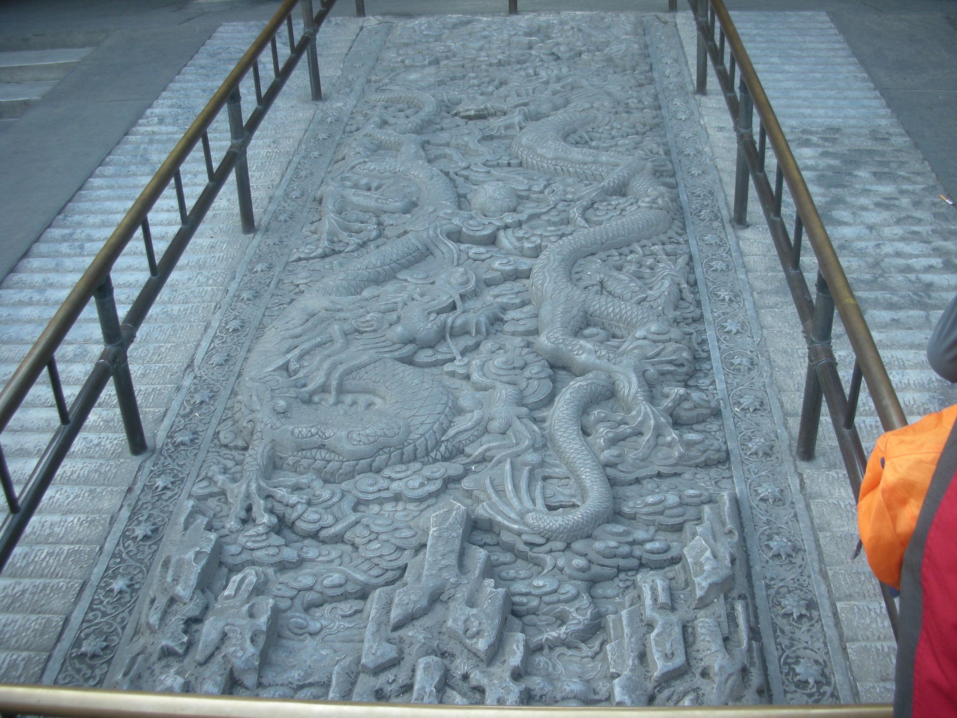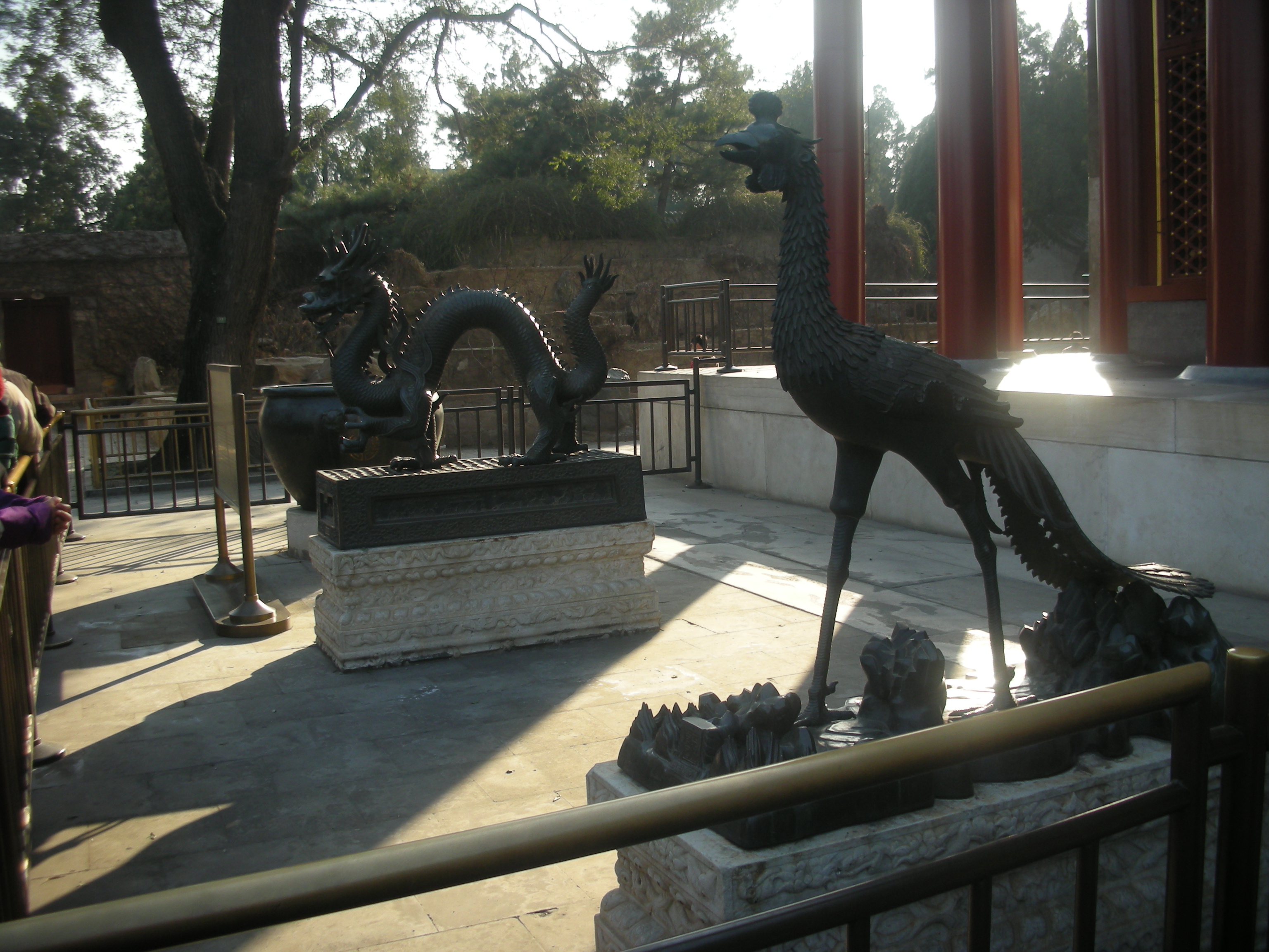 (仁寿殿の不死鳥と龍。皇帝が来るところで龍より上の動物があるのは珍しい。西太后の権力を現す。)