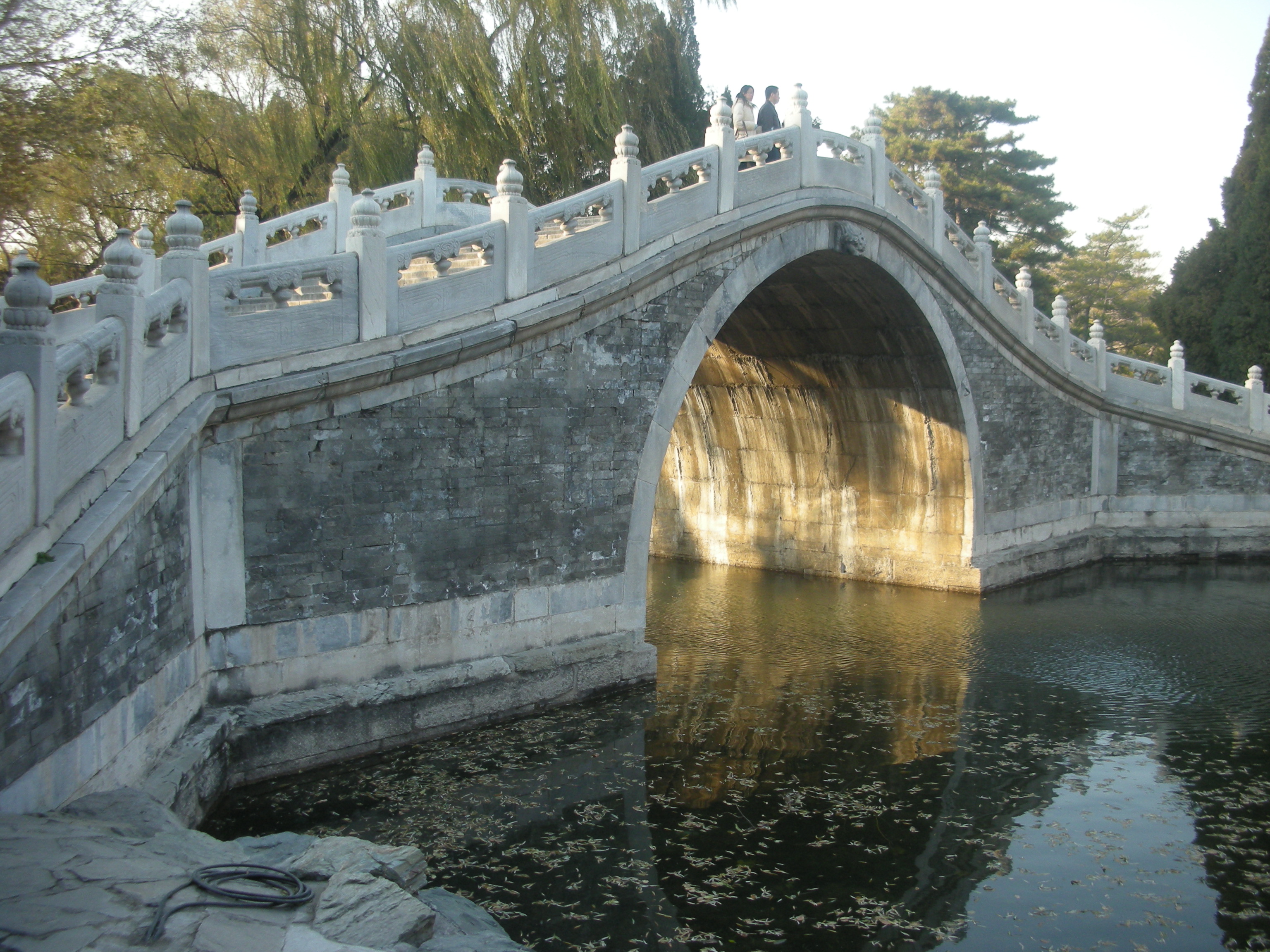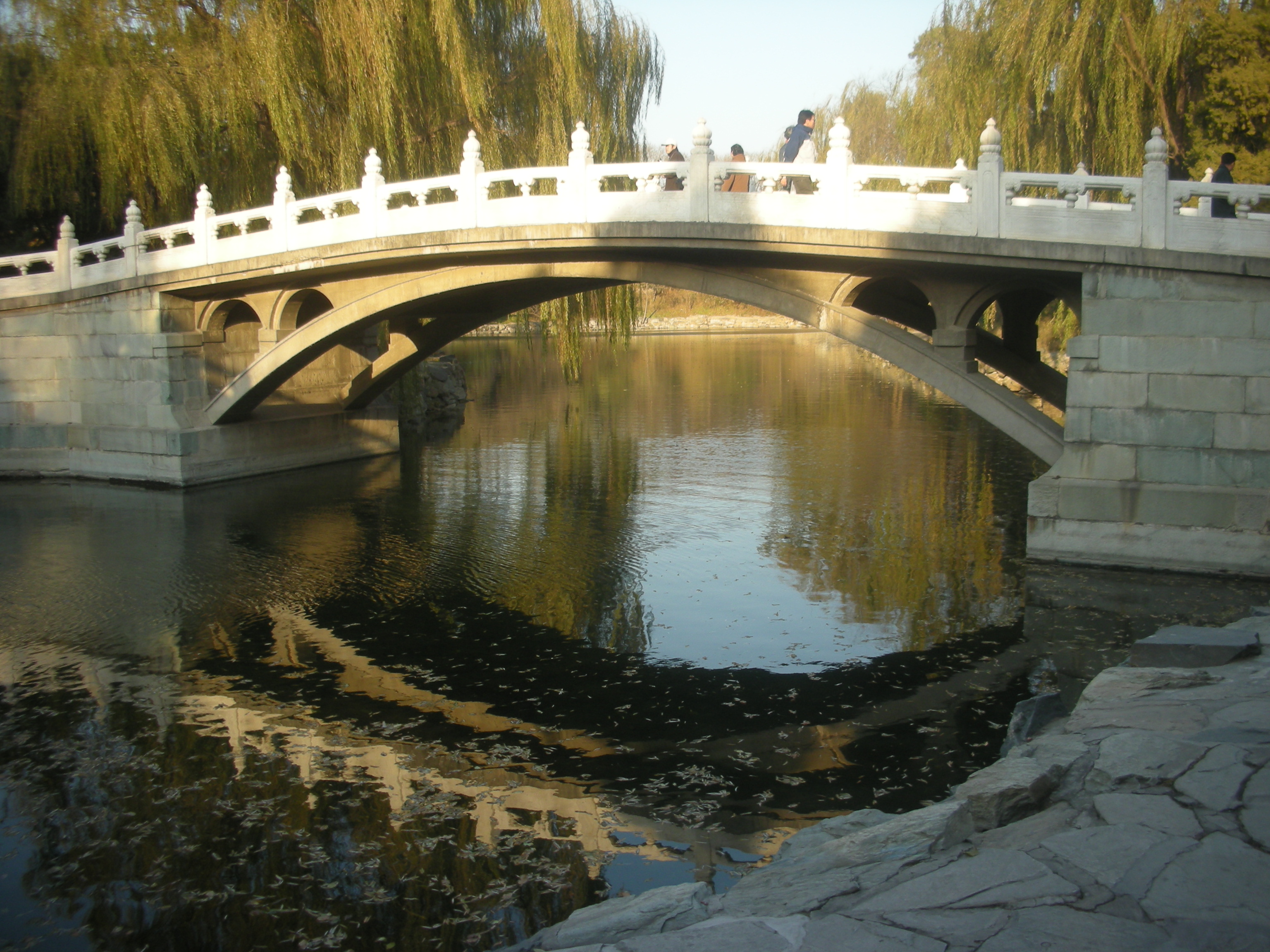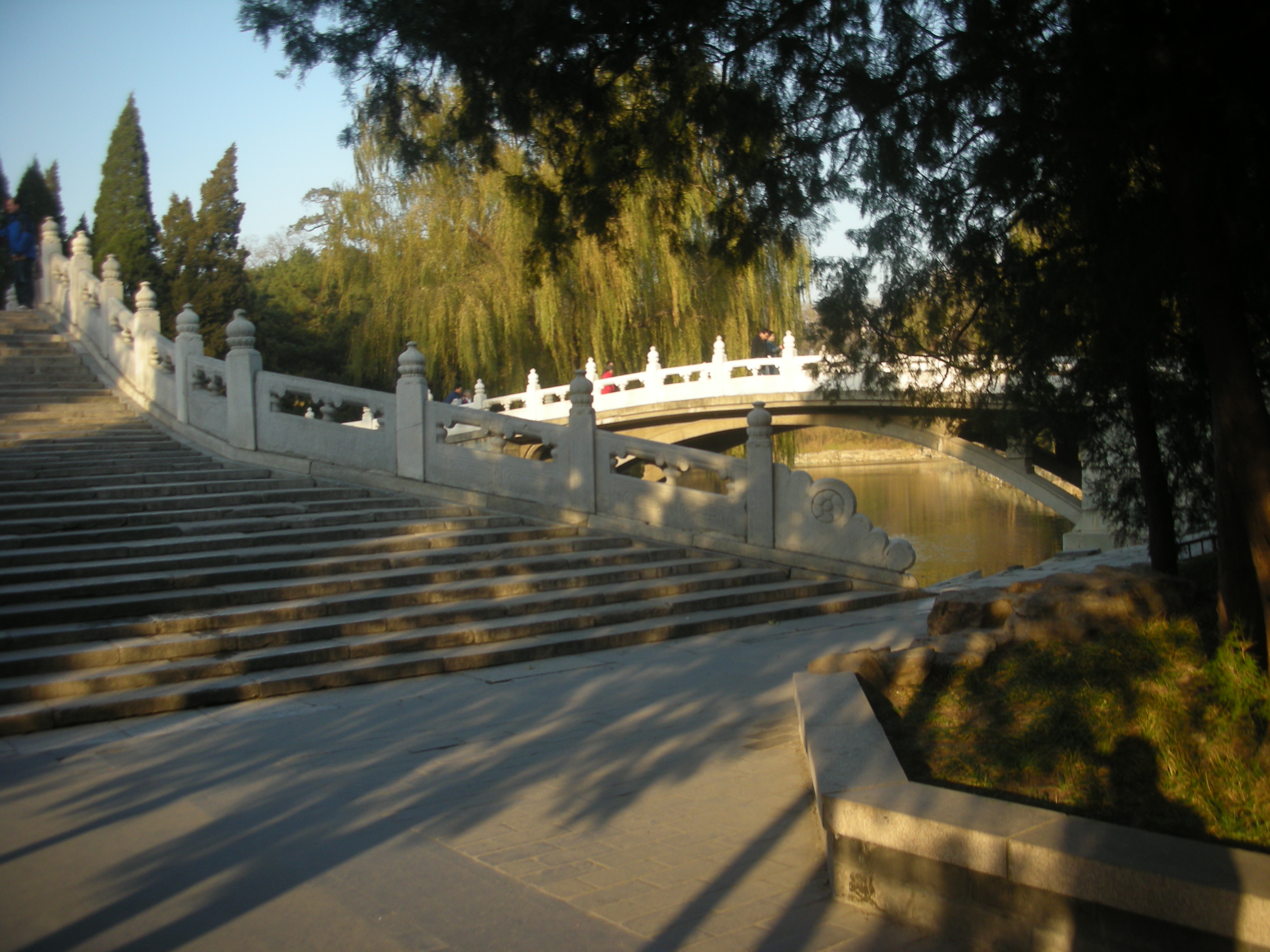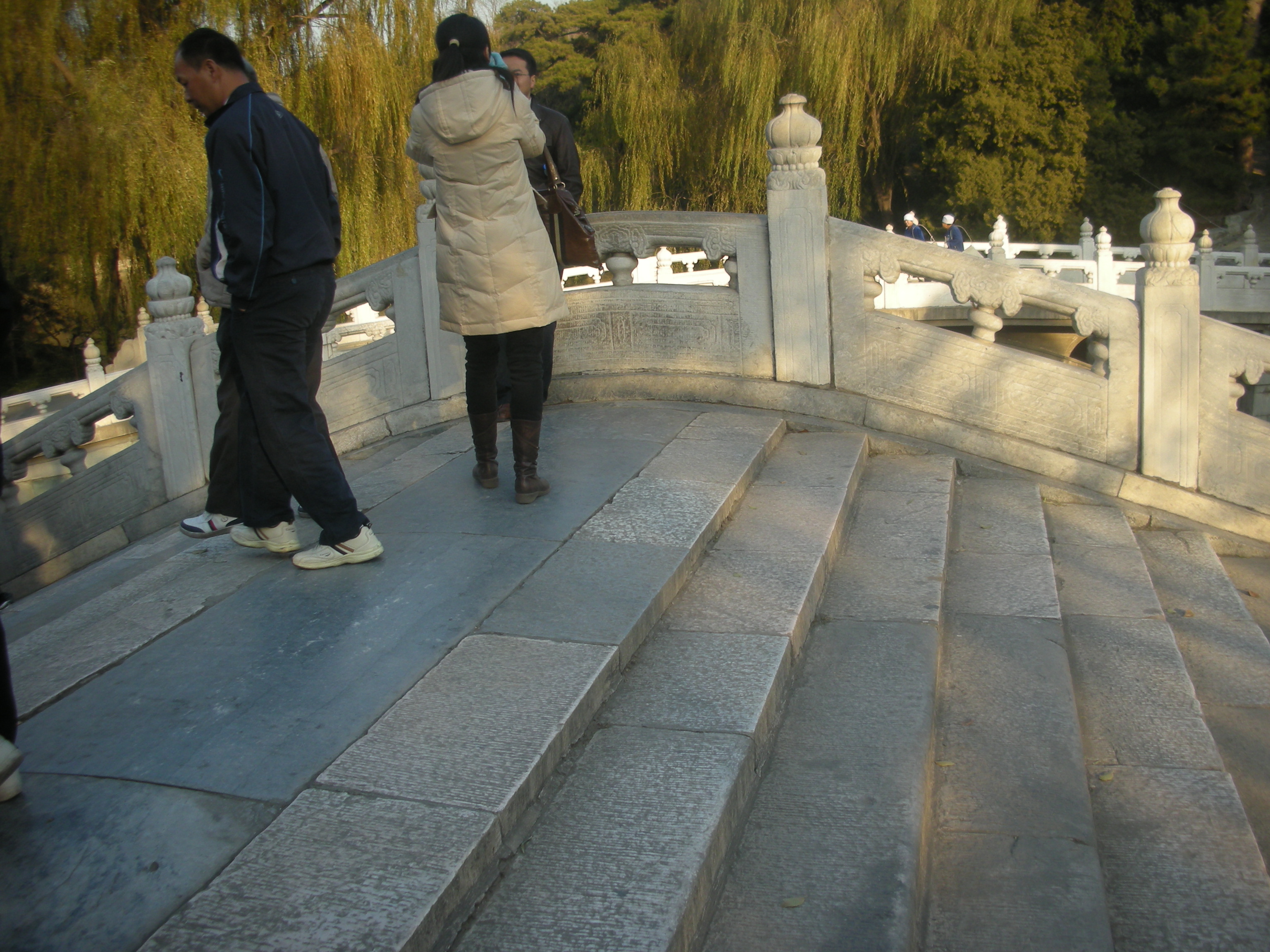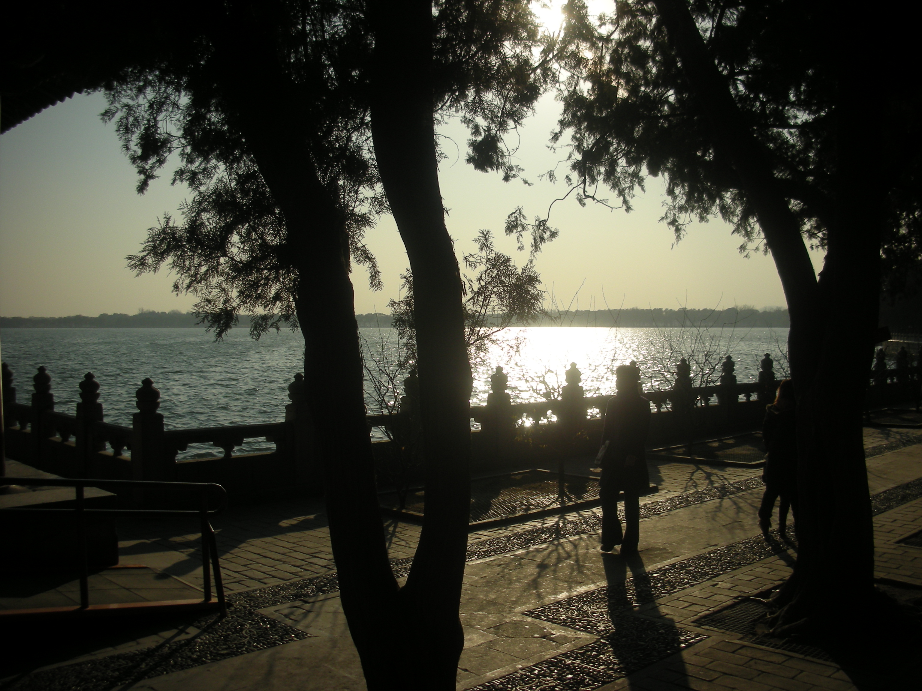(昆明池を臨みます。十七孔橋と南湖島。)