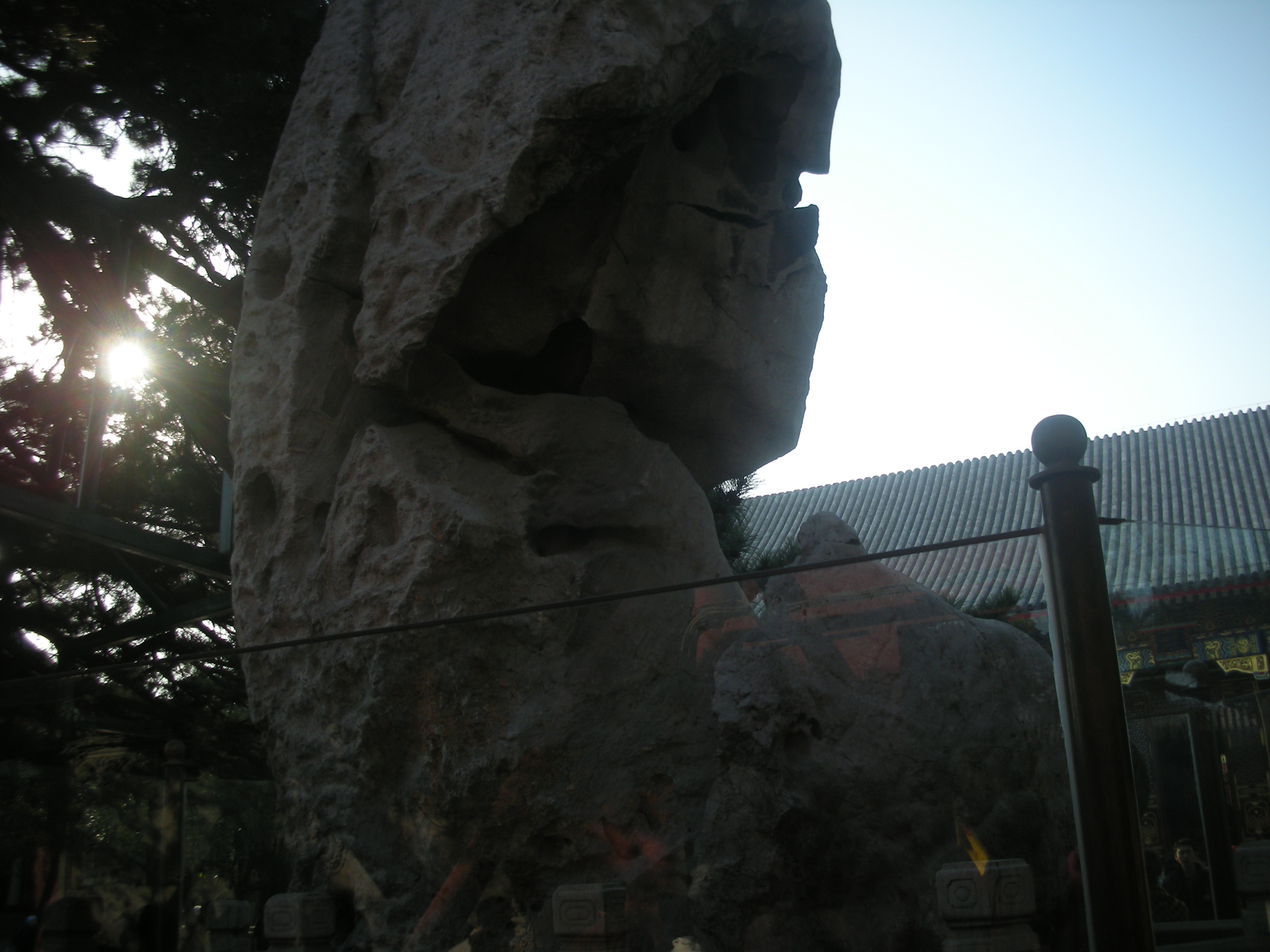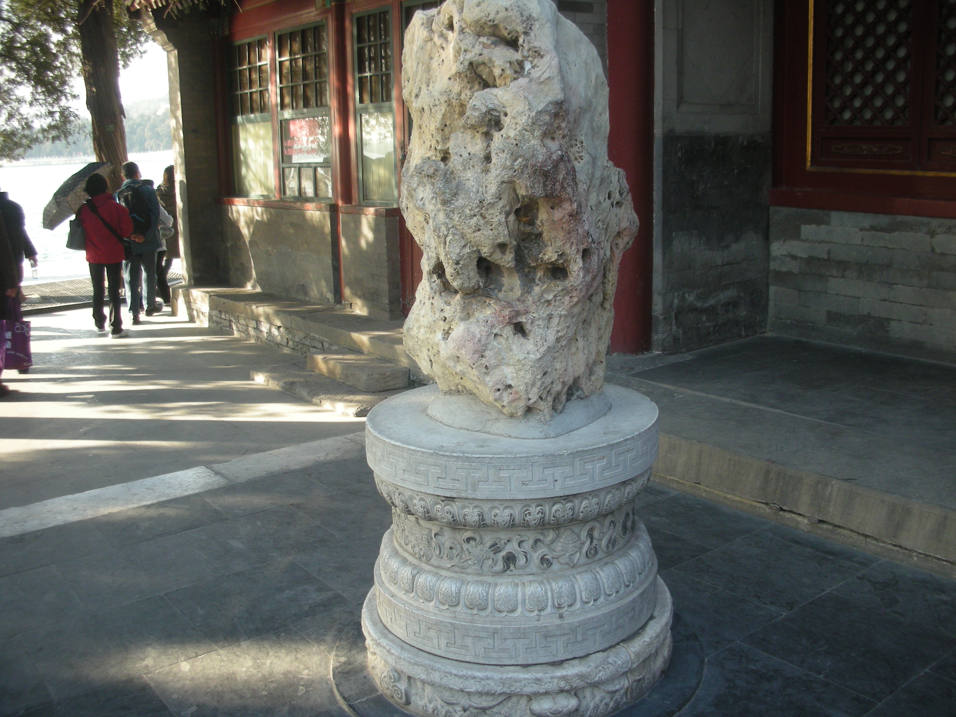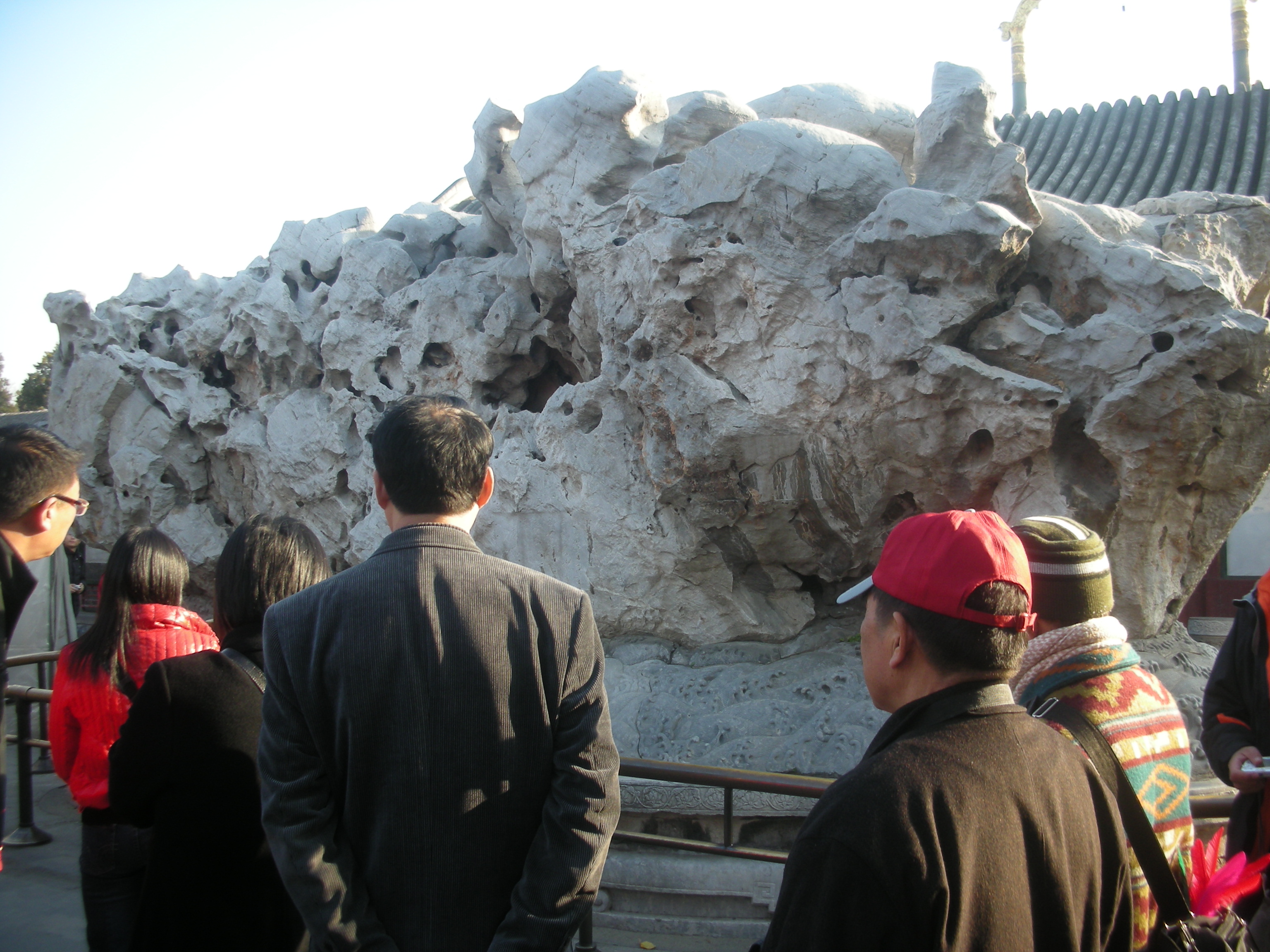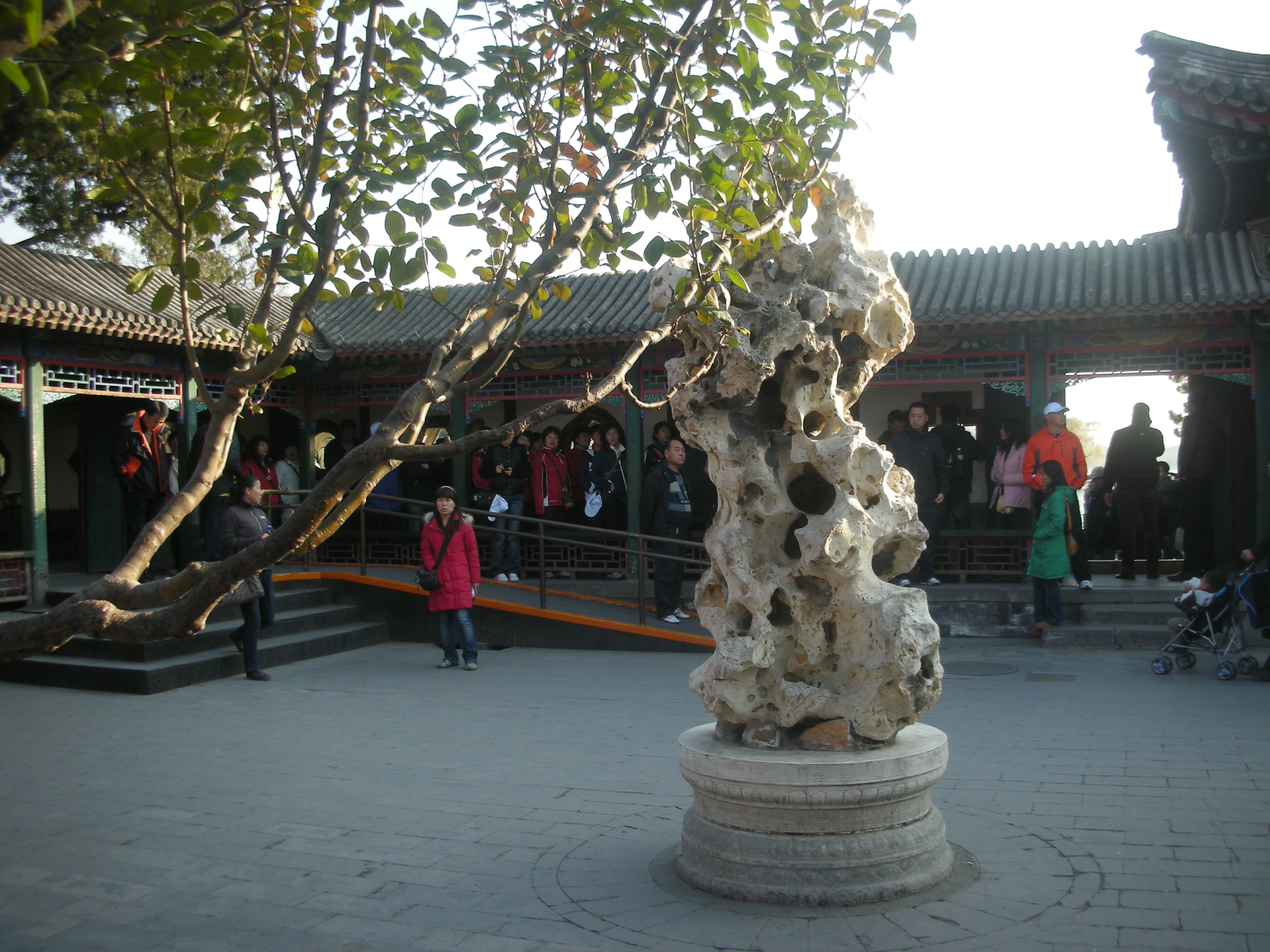 (楽寿殿の太湖石。青芝岫。俗称「敗家石」 中国最大の庭園石だそうです。)