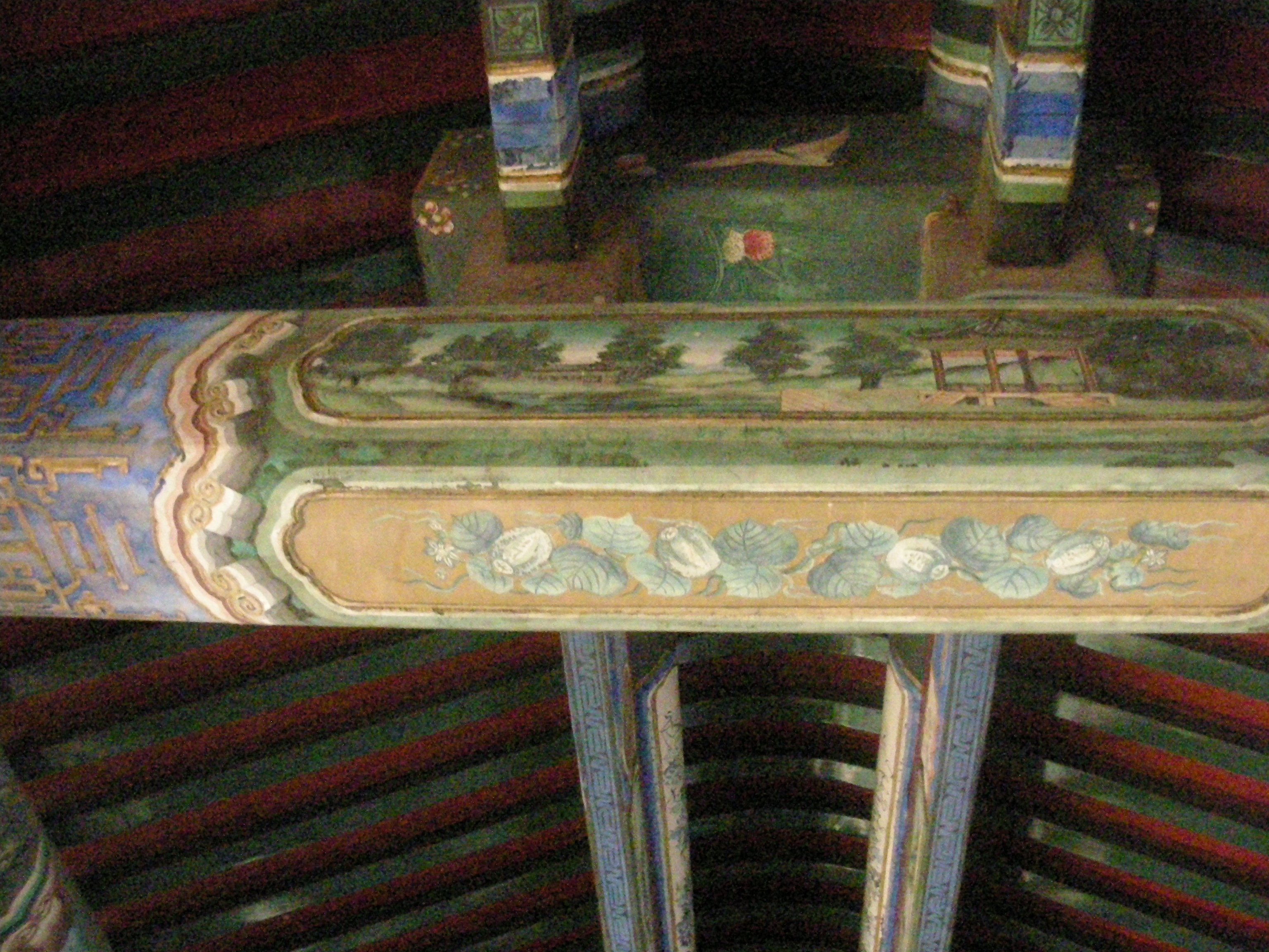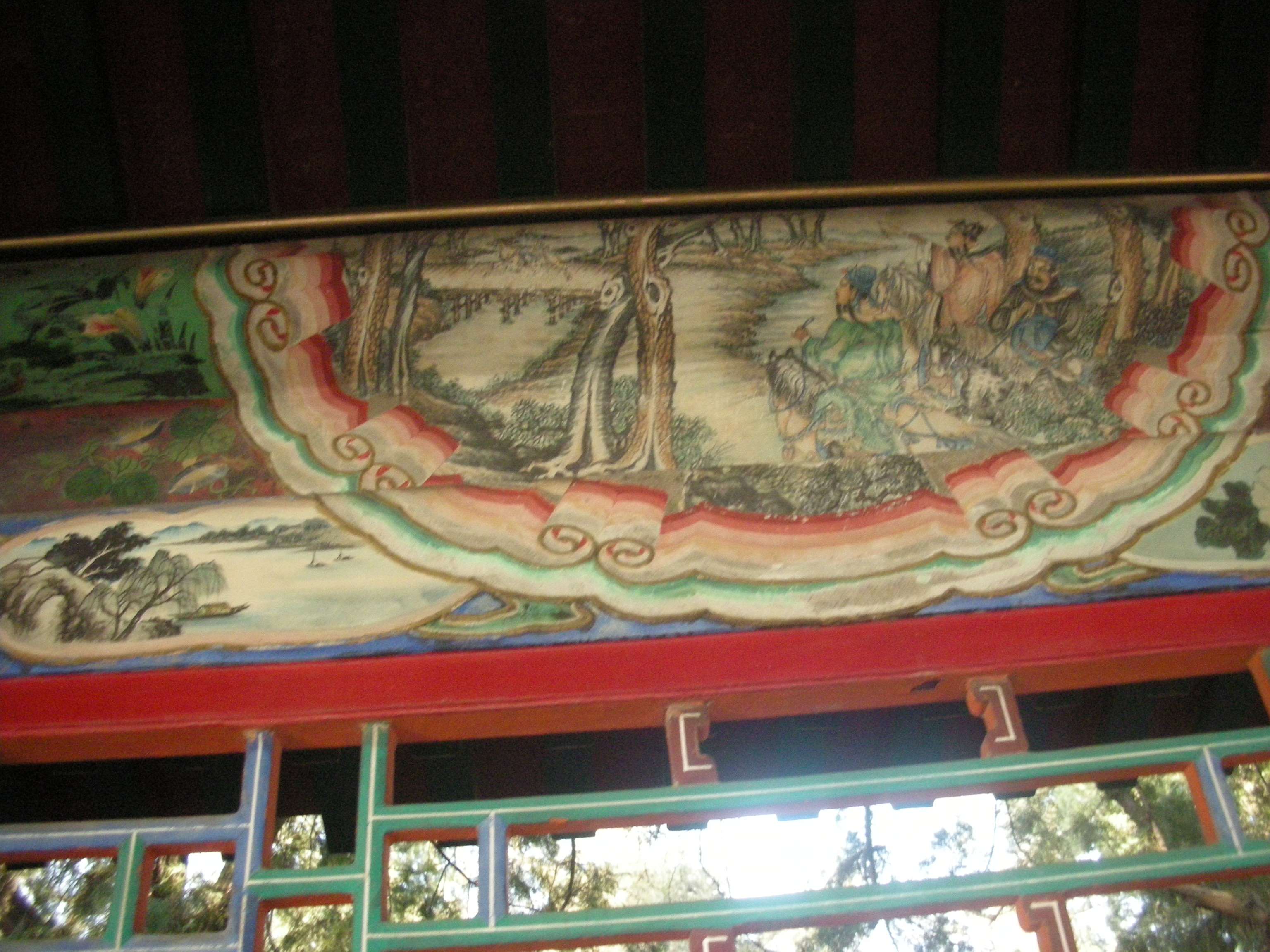 (西太后が光緒帝を軟禁していた場所と言われている「玉瀾堂」の壁画。)