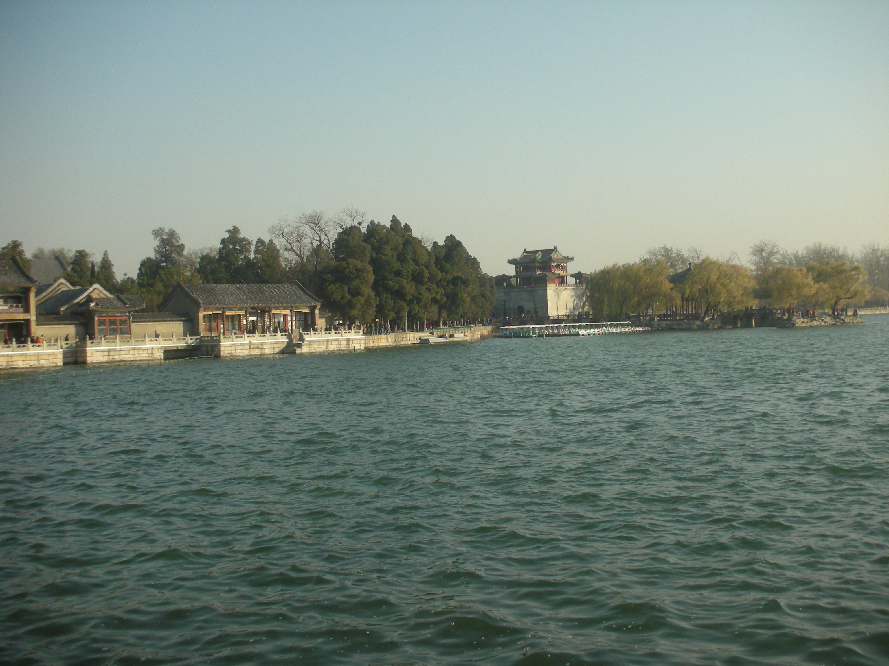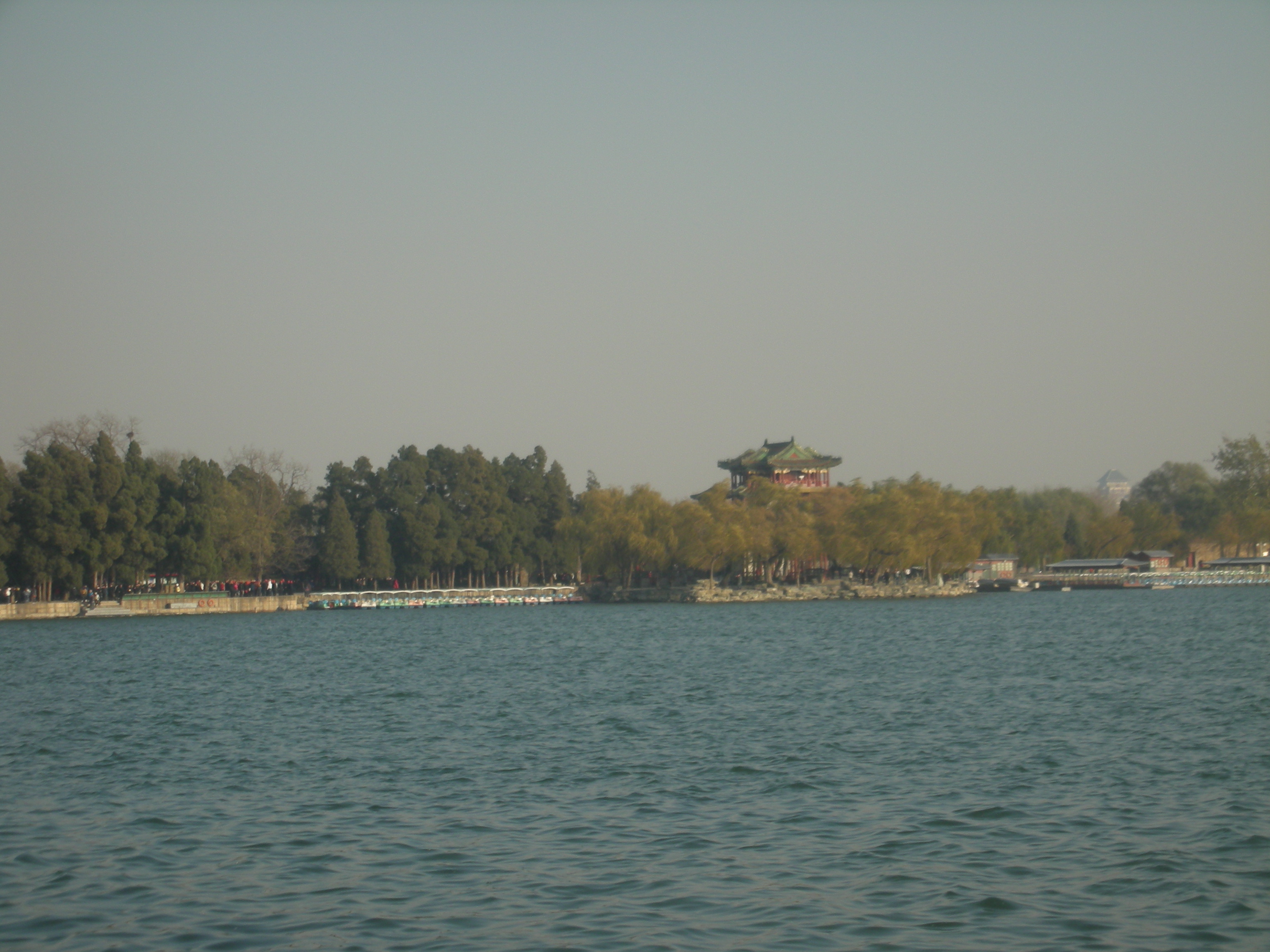 (昆明池。頤和園の総面積は293ヘクタールのうち、湖と池で全体の4分の3を占めており、人工とは思えない大きさの湖。元々は杭州の西湖をモデルに作ったとされています。眺めていても全体の大きさがわからないくらいの大きさです。)