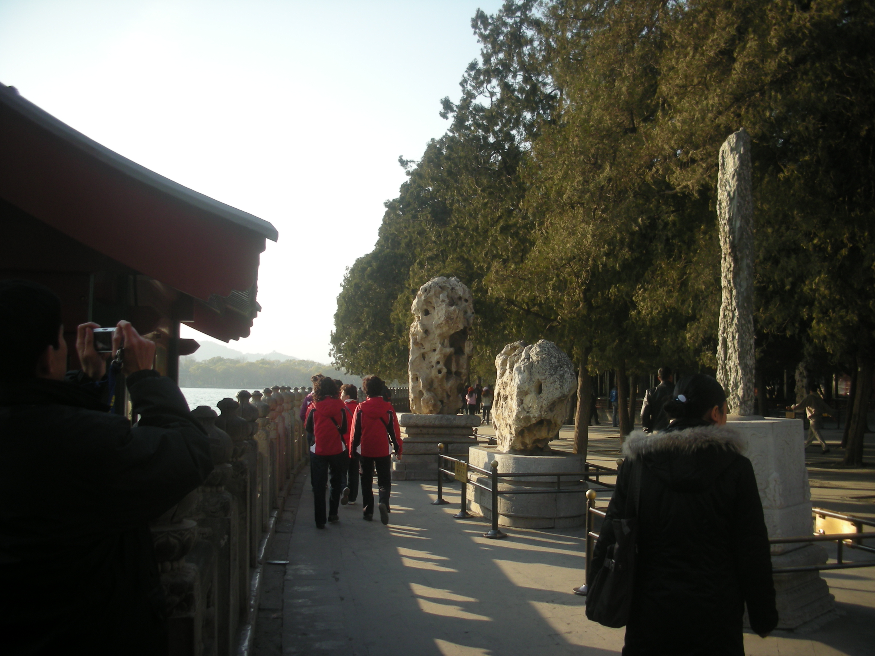 (大理石でできた公園のシンボル、清晏舫。英仏連合軍侵略の際、上部の建物が破壊され、それを西太后が西洋風建築で再建し、「河清海晏」にちなんで清晏舫と名付けたとのことです。比喩として、天下太平を意味し、絶対に覆らない石の船を作り、清朝の政権も覆らないという意味を込めているようです。)