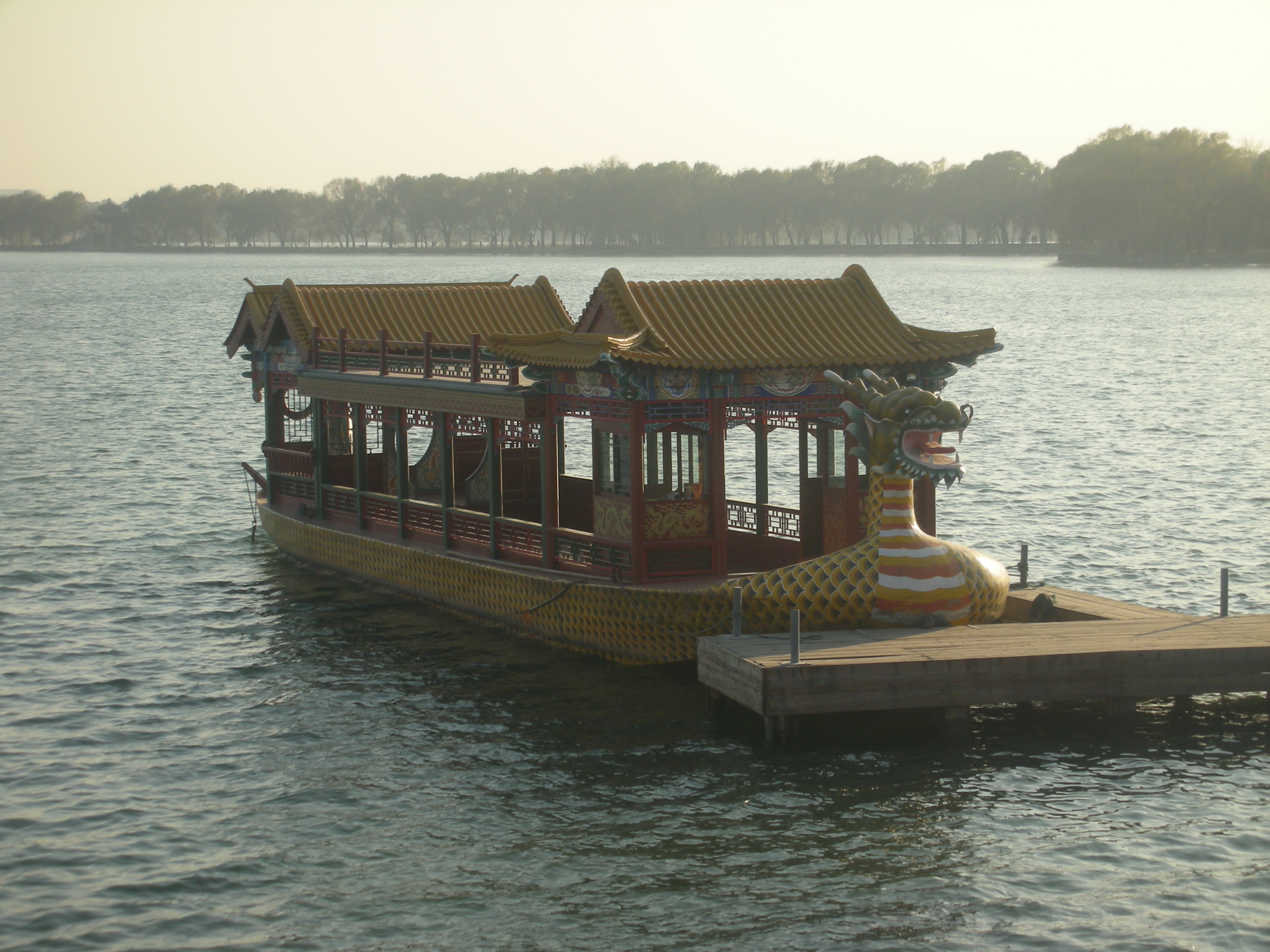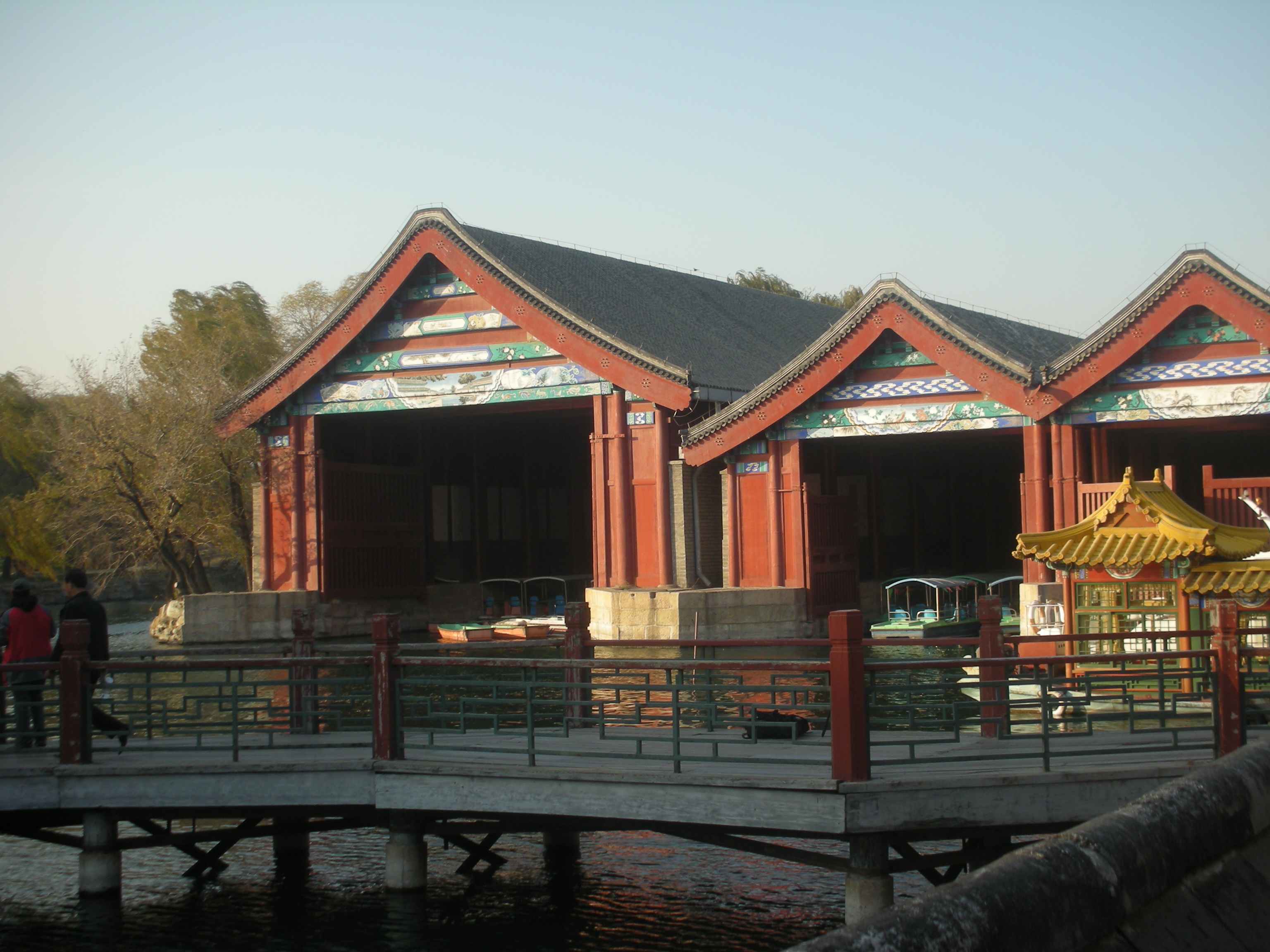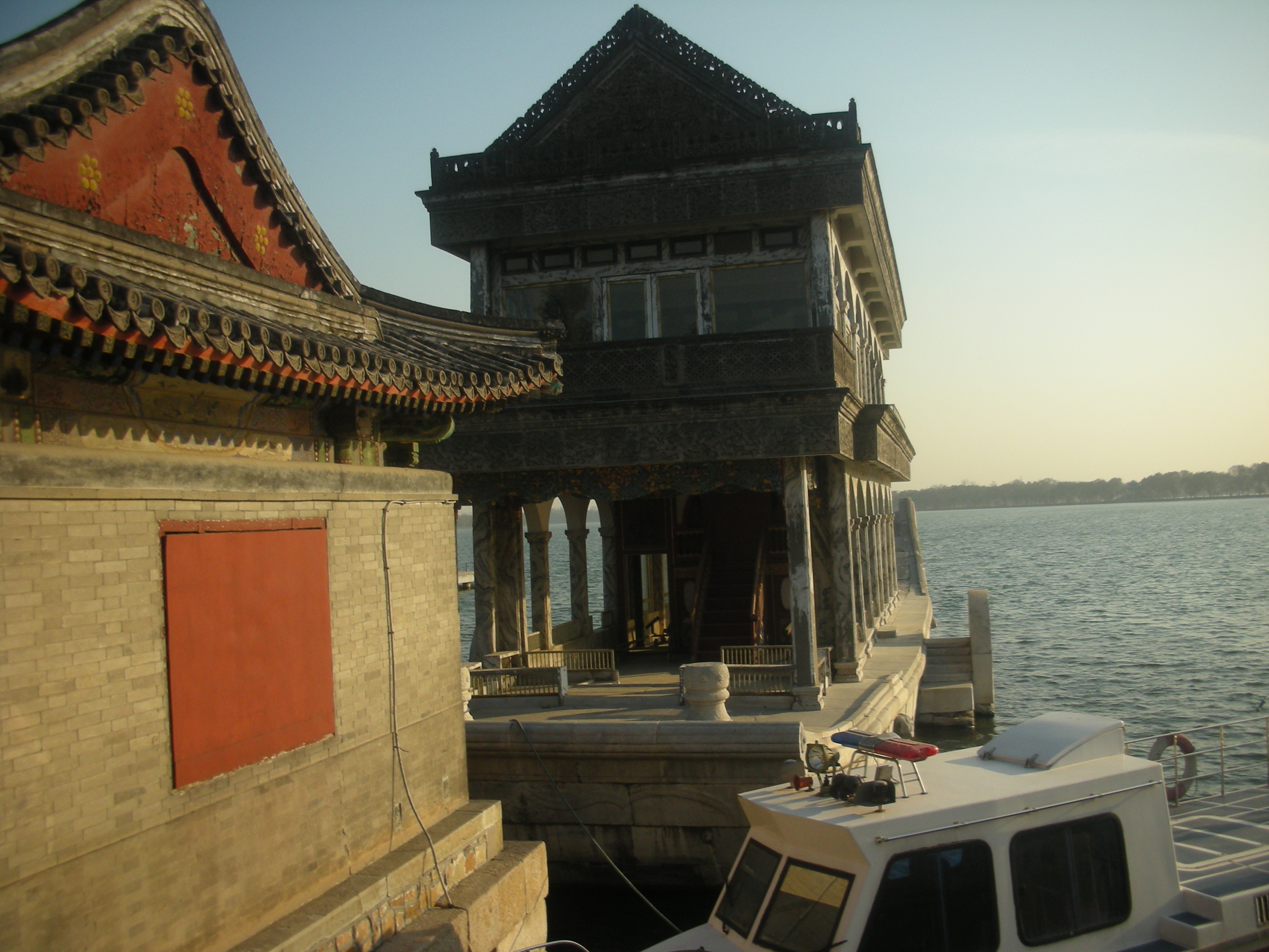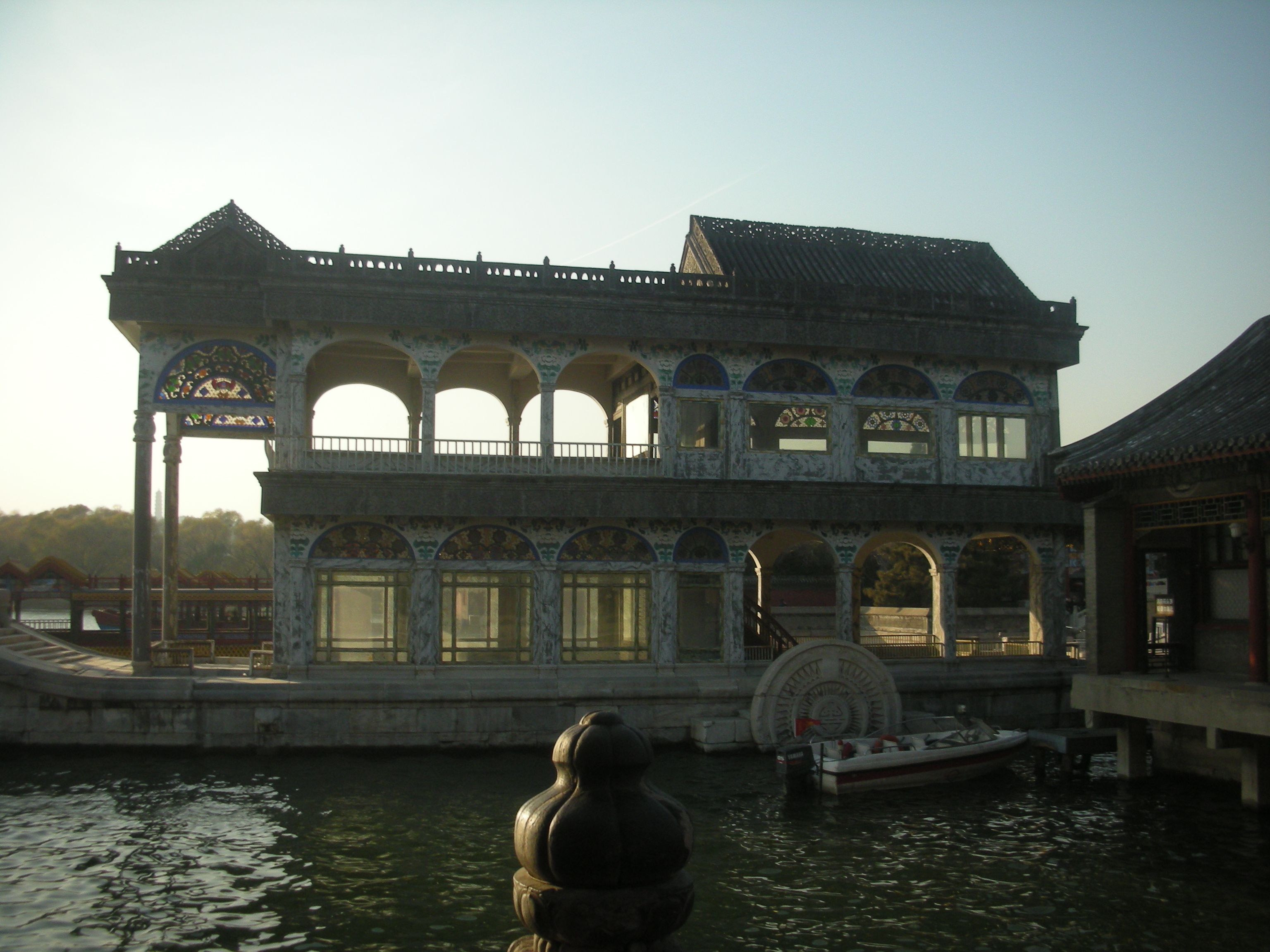1860年に英仏連合により破壊され、荒廃したものを西太后が贅の限りを尽くした避暑地として再建したものです。西太后は昆明湖に浮かぶ、全長36メートルの大理石の清晏舫を建設しました。内部は木造でステンドグラスの美しい西洋式建築で、頤和園の中で唯一の様式の建造物です。これらを再建するために、西太后は1888年に海軍の造艦資金を流用するなど膨大な費用をかけて再建しました。これが財政悪化を招き、日清戦争に負けた要因の一つといわれています。