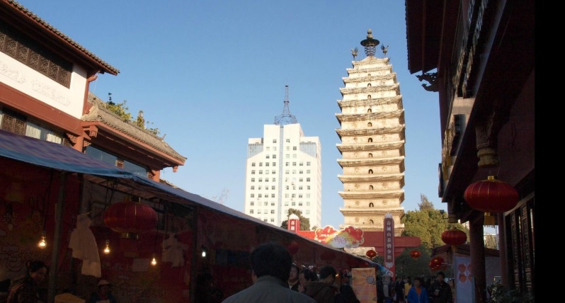 昆明最終日。昆明市中心部を歩いていると、新旧入り混じった老街を通ると西と東に瓜二つの塔である、西寺塔と東寺塔が見えてきました。南詔国時代に最初の塔が建立され、現在のものは1830年代以降の清代の建造物とのことです。立派な歴史を感じさせる建物でしたが、残念ながらどちらも中には入れませんでした。