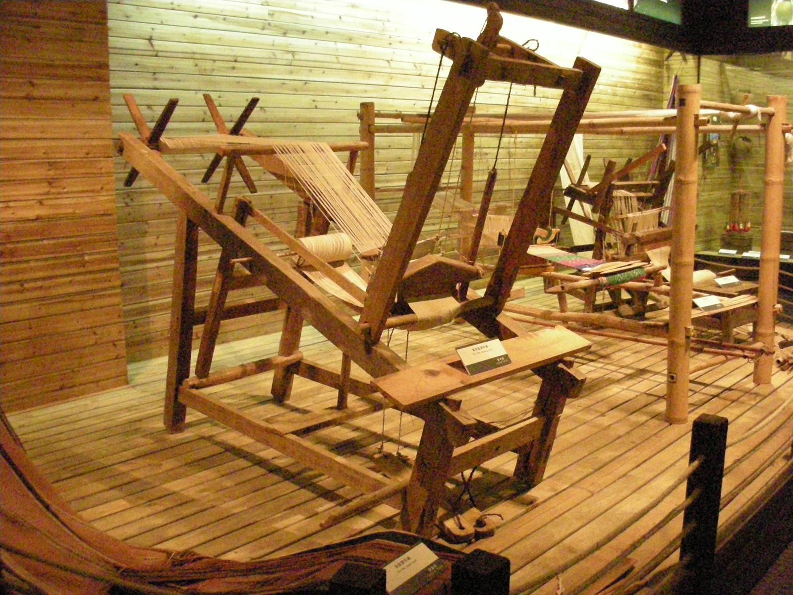 制作工芸コーナーでは少数民族の染織技術と刺繍技法が紹介されています。展示さている品々は各民族で刺繍の造型美を競い合い、タイ族とチワン族の錦織、ペー族とミャオ族の藍染め布などの工芸品や水平織機、腰機などの数多くの織機も展示されています。