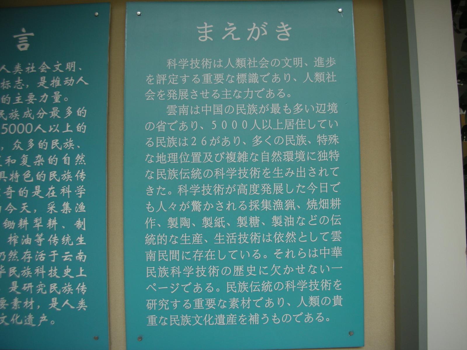 生産技術と生活技術に分けて紹介されています。採集漁猟時代から農耕時代に至るまで各民族が農業や漁業で用いた道具や資料が展示され、少数民族独特の草葺屋根家屋や木造高床式家屋などの模型も作られています。また製陶技術、製紙技術や伝統搾油、搾糖技術なども紹介されています。生産技術と生活技術に分けて紹介されています。採集漁猟時代から農耕時代に至るまで各民族が農業や漁業で用いた道具や資料が展示され、少数民族独特の草葺屋根家屋や木造高床式家屋などの模型も作られています。また製陶技術、製紙技術や伝統搾油、搾糖技術なども紹介されています。